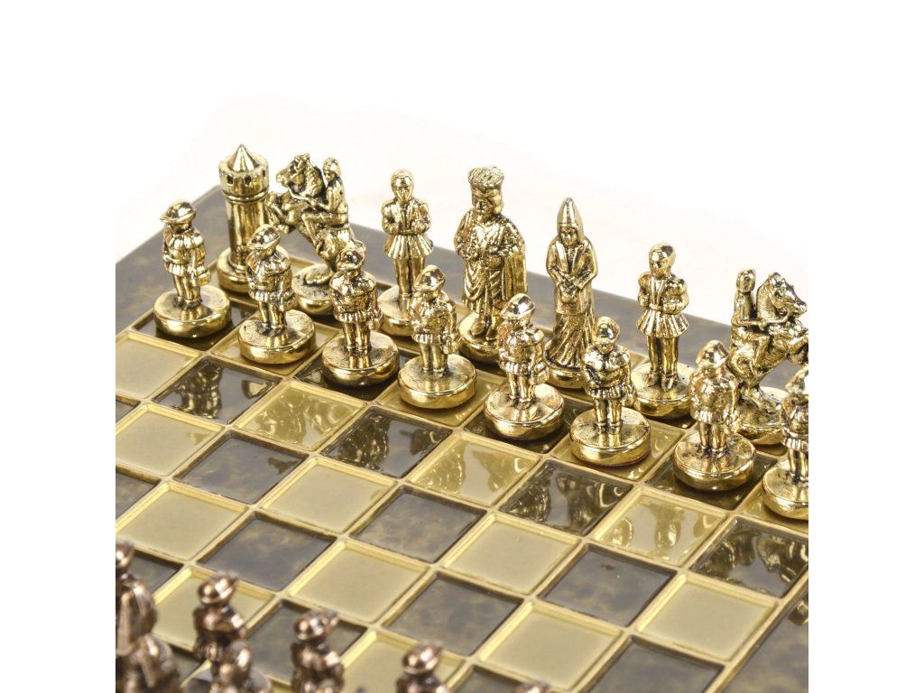 Jede Figur ist sorgfältig gefertigt, um die kunstvollen Muster des Byzantinischen Reiches widerzuspiegeln, sodass jede Partie, die Sie spielen, von historischer Eleganz durchdrungen ist. Die kompakte Größe dieses Schachsets macht es ideal für Reisen oder als dekoratives Element in Ihrem Zuhause.