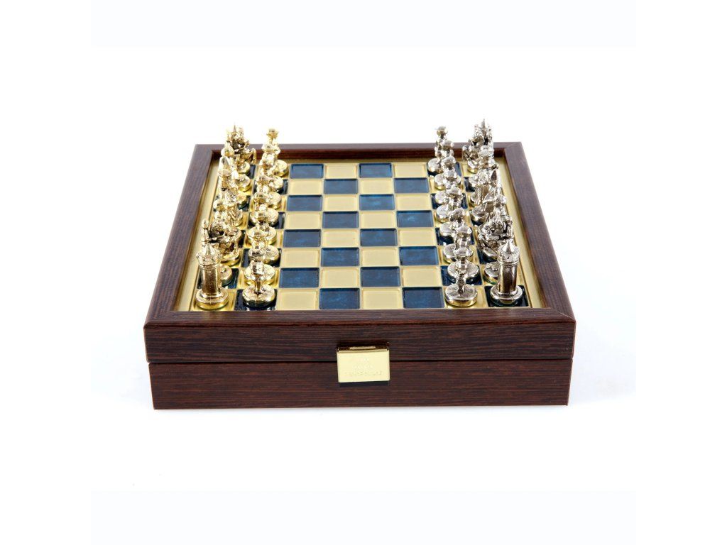 Erleben Sie die Pracht des Byzantinischen Reiches mit diesem wunderschön handgefertigten Schachset. Jede Figur, prächtig mit Gold und Silber verziert, spiegelt das reiche kulturelle Erbe der byzantinischen Epoche wider. Dieses extra kleine Set ist ein Beweis für feine Handwerkskunst und Liebe zum Detail.