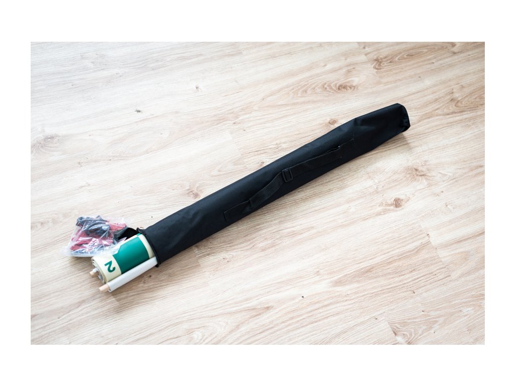 Zum Set gehört eine schwarze Tragetasche, in der das Set verpackt ist und das Demoschachbrett praktisch zu transportieren ist. Der Ständer ist nicht im Set enthalten.