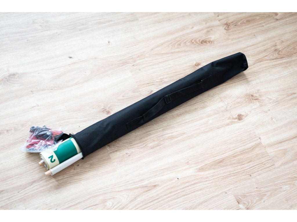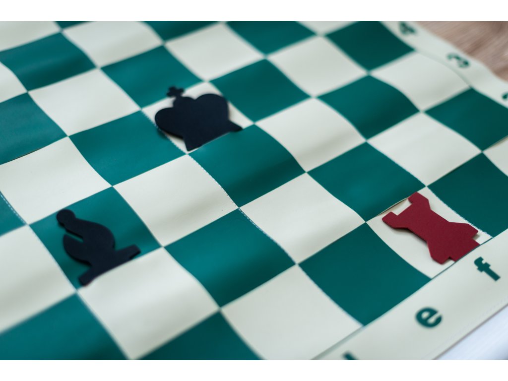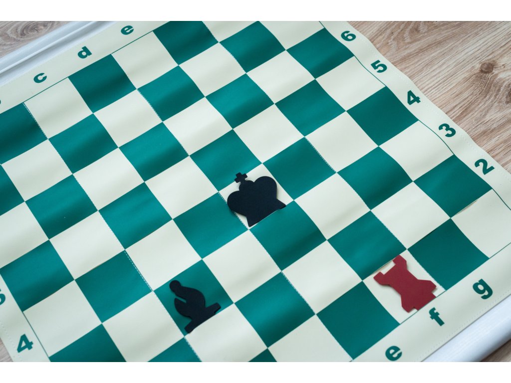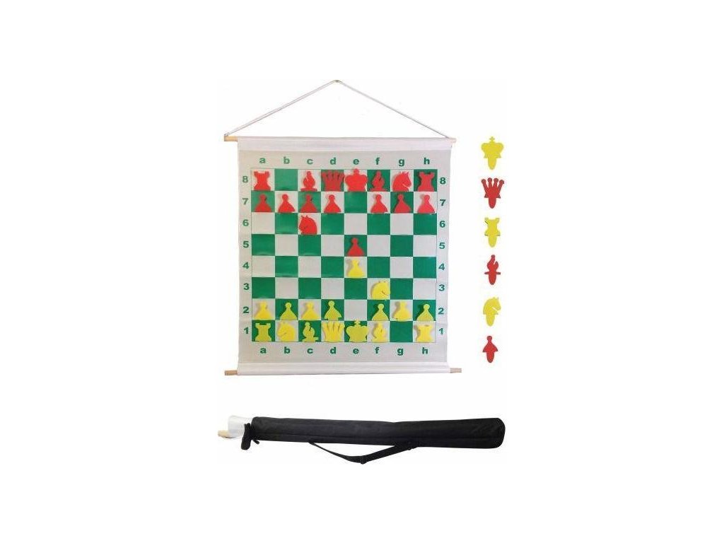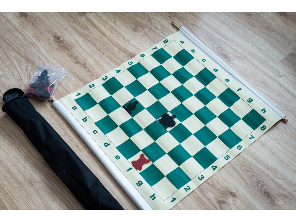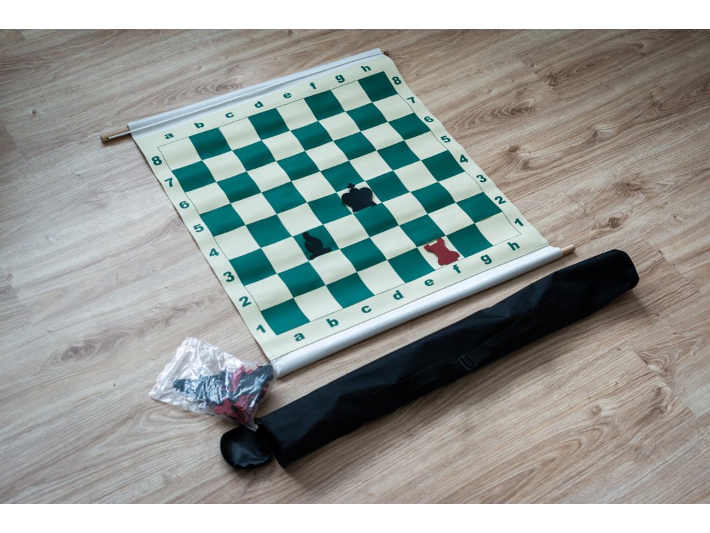 Zum Set gehört eine schwarzeTragetasche, in der das Set verpackt ist und das Demoschachbrett praktisch zu transportieren ist.