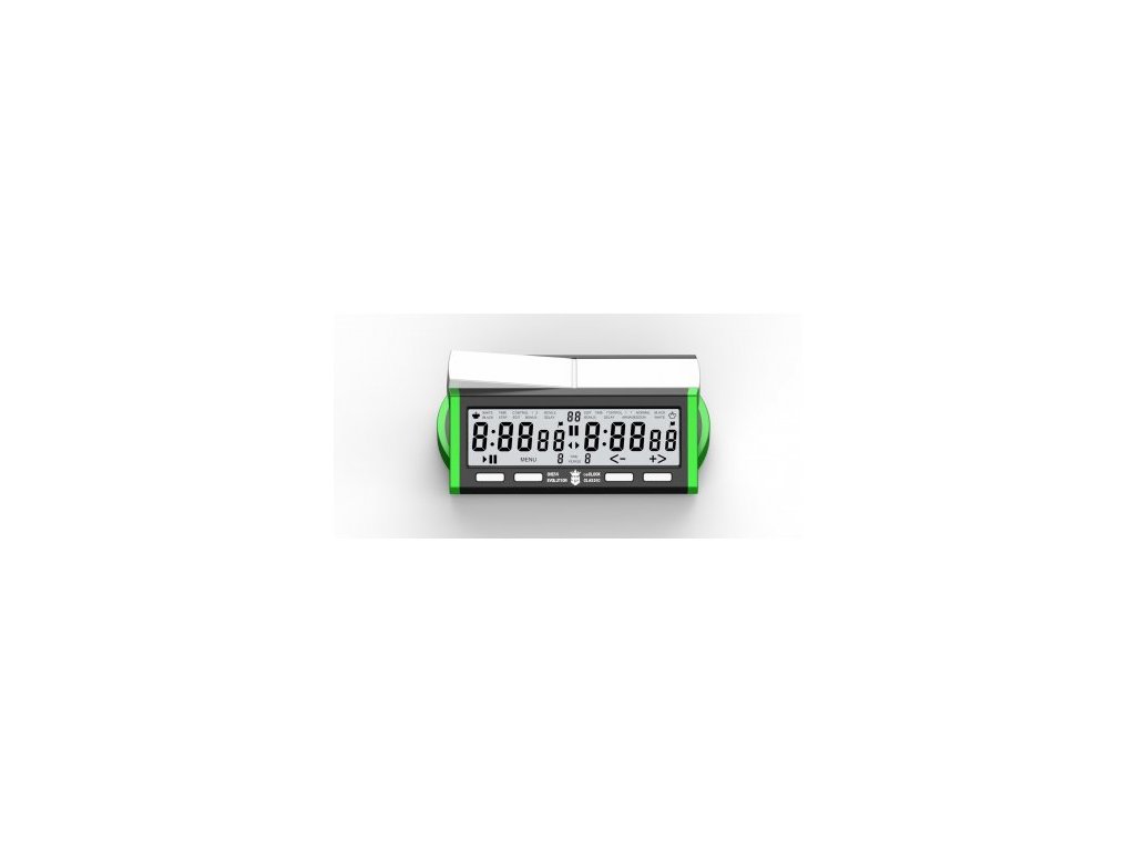 ist eine vom Internationalen Schachverband FIDE zugelassene digitale Schachuhr. Alle offiziellen FIDE-Zeitkontrollen sind in der Uhr vorprogrammiert und alle anderen Zeitkontrollen können manuell eingestellt werden. Die Einstellungen können auch manuell geändert werden. Sie hat ein modernes Design und einen gut sichtbaren Bildschirm.