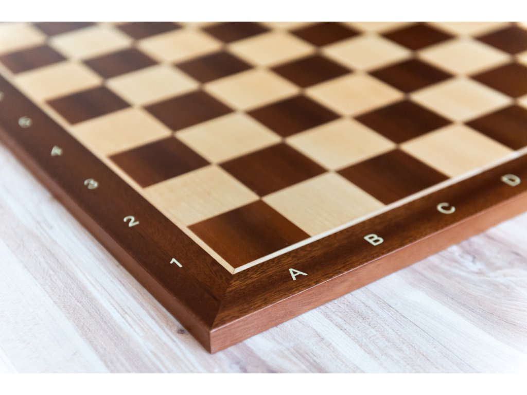 Das Schachbrett ist rundherum mit Notationen markiert. Die Unterseite des Schachbretts ist mit einer weichen Unterlage ausgestattet, die ein geräuschloses Spielen ermöglicht und Abrieb verhindert.