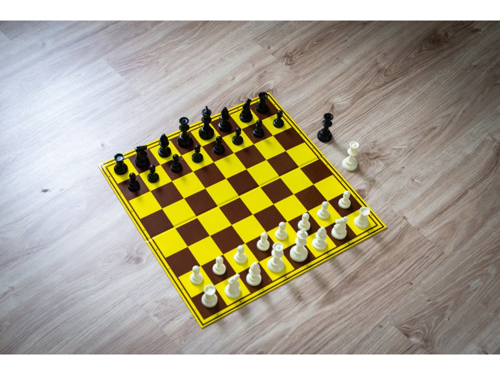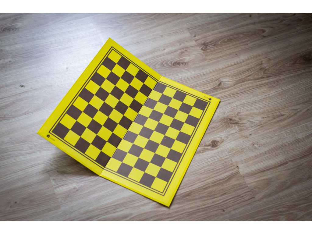 Schachbrett geeignet für Sets mit Königshöhe 9,8cm. Vorteil der leichten Aufbewahrung, wenn es aufgeklappt ist, sogar auf einer unbefestigten Oberfläche behält es seine Form.