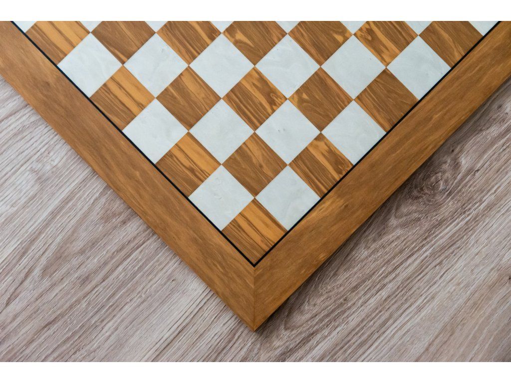 Olivenholz ist bekannt für seine Langlebigkeit und seine sehr hohe Dichte, die bis zu 92% beträgt. Es mag wie ein Klischee klingen, aber jedes Stück Olivenholz ist ein Original, das Ergebnis einer handwerklichen Herstellung und der menschliche Faktor spielt eine wichtige Rolle. Auch das Muster des Olivenholzes ist unregelmäßig, aber wo auch immer es platziert wird, Sie werden garantiert Freude an Ihrem Schachbrett haben.