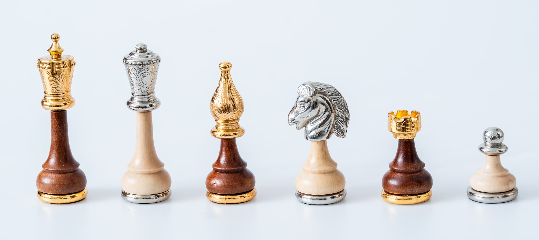 Material der Schachfiguren: | Holz, gold-silbernes Metall |