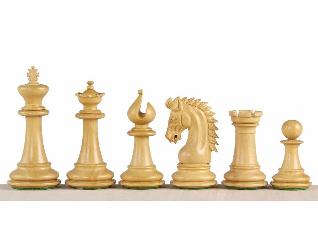 Die Schachfiguren sind aus Hickoryholz gefertigt.