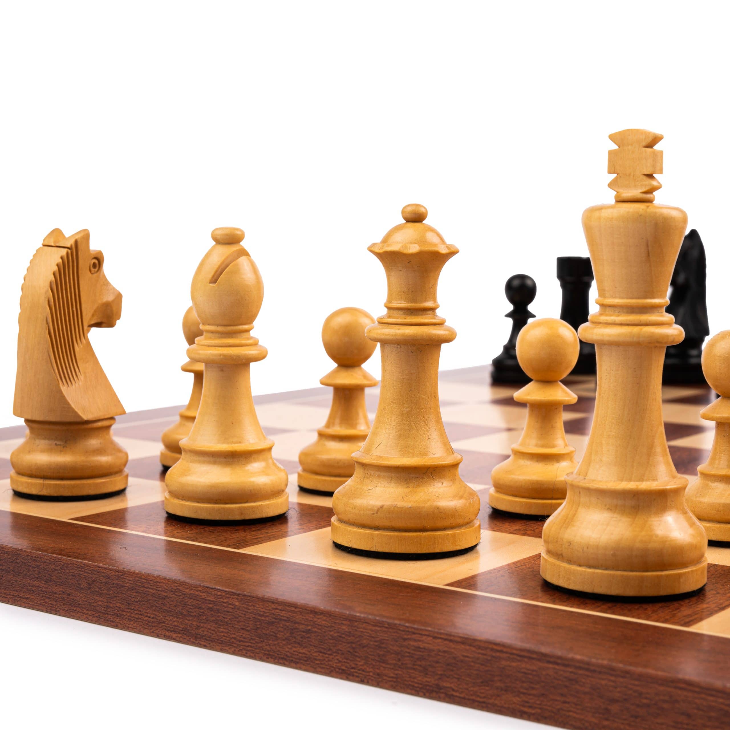 Jedes Detail dieses Sets wurde sorgfältig entworfen, um eineinzigartiges Erlebnis bei jedem Spiel zu bieten. Das Schachbrett selbst ist ein Kunstwerk - hergestellt aus Qualitätsholz mit einer außergewöhnlichen Oberfläche. Die ebenso sorgfältig gefertigten Figuren haben Bleigewichte an der Unterseite für perfekte Stabilität.