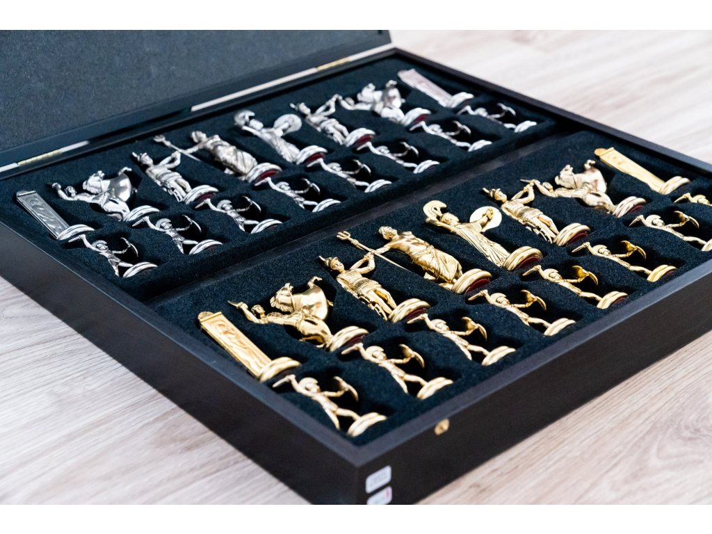 Entdecken Sie unsere Kollektion von luxuriösen Schachsets und werten Sie Ihren Spielraum mit diesem kulturell reichen und künstlerisch exquisiten Schachspiel der griechischen Mythologie auf. Die perfekte Ergänzung für jeden, der Geschichte, Kunst und hervorragende Handwerkskunst in seiner Spielesammlung schätzt.