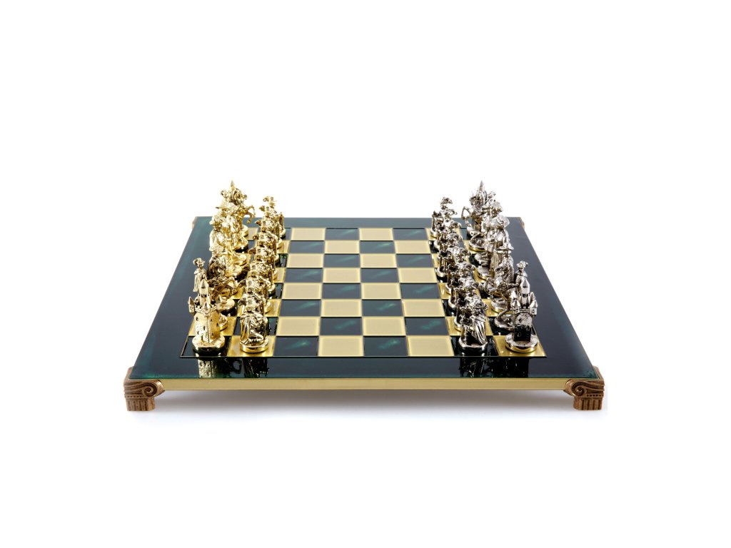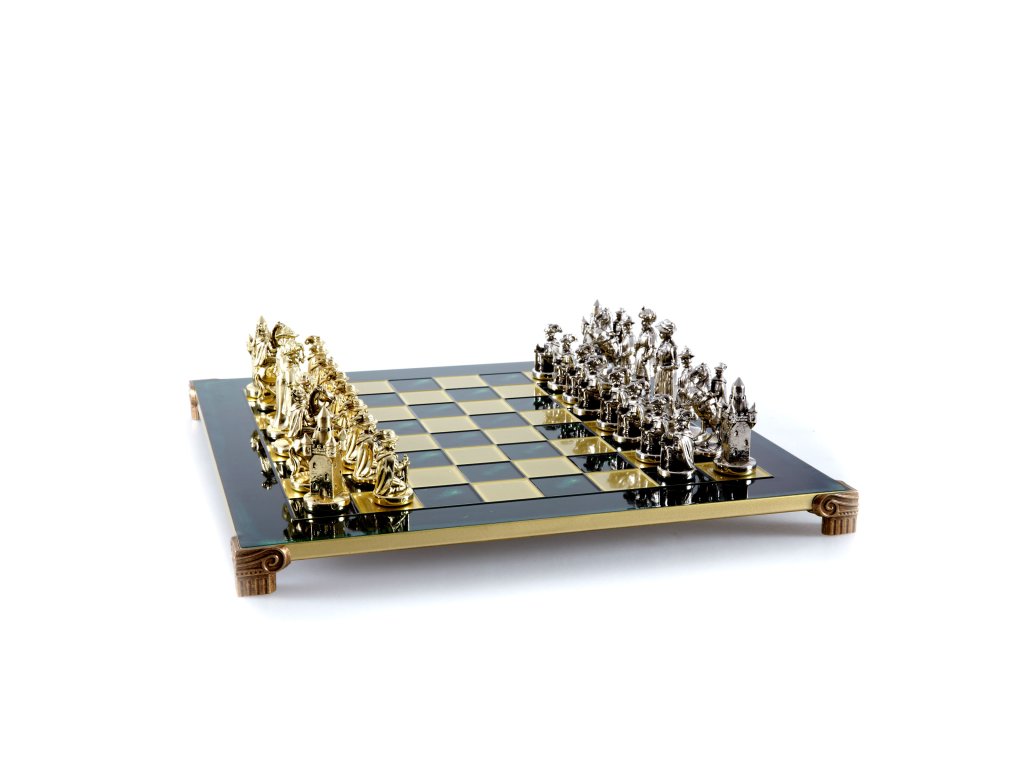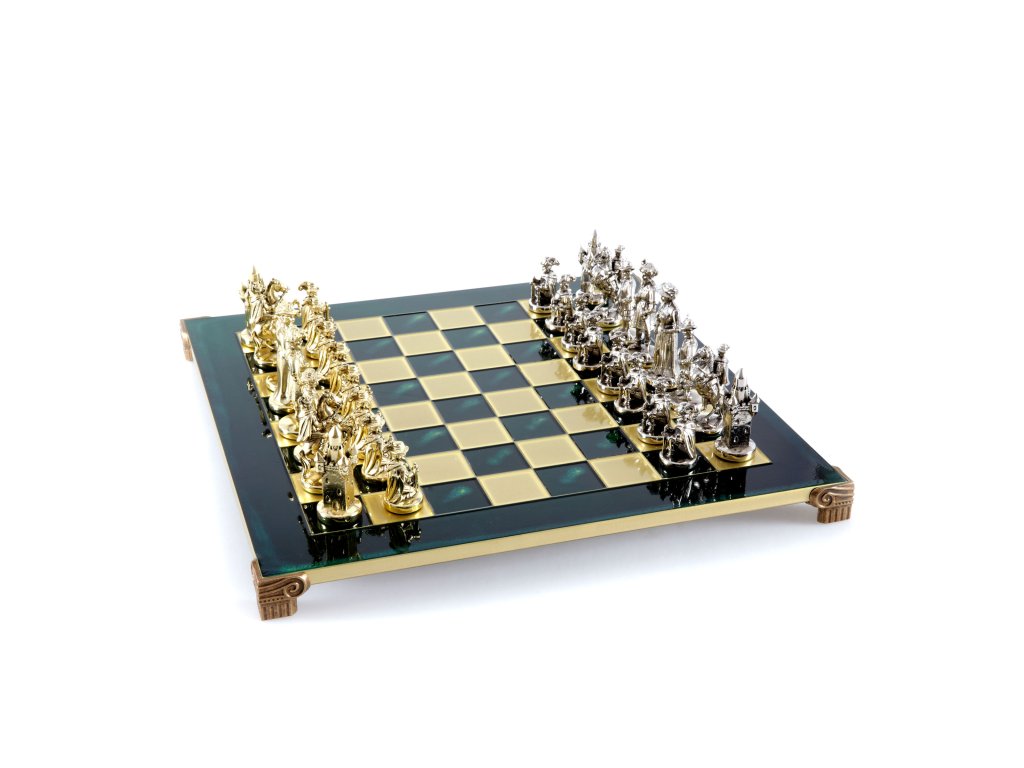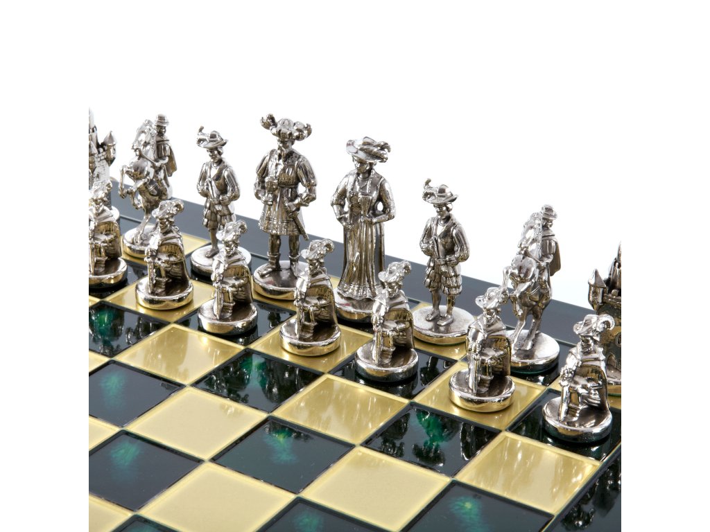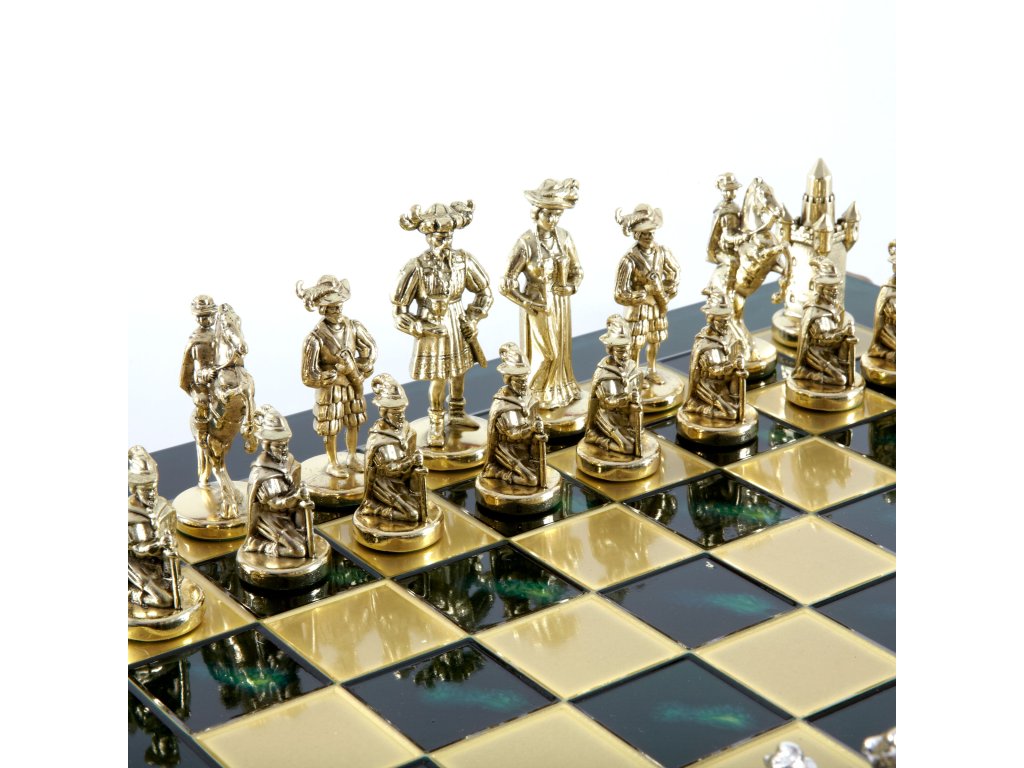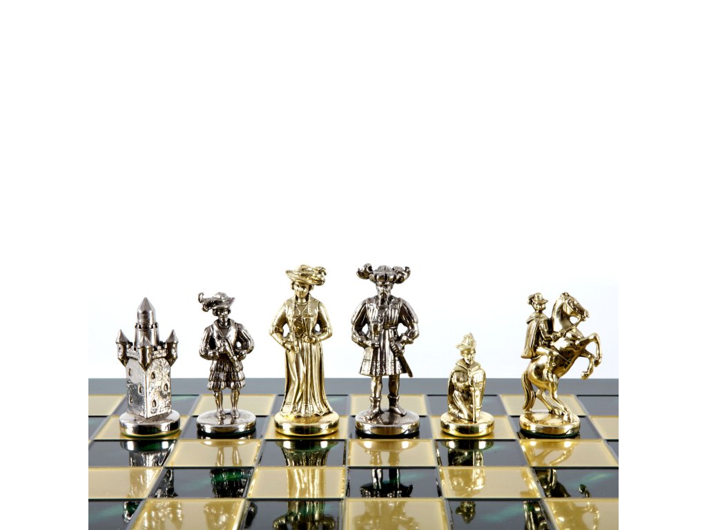 Zurück in die Renaissance mit dem handgefertigten mittelalterlichen Schach-Set. Dieses prächtige Set besteht aus goldenen und silbernen Schachfiguren, gepaart mit einem 44 x 44 cm großen Schachbrett aus Bronze und ist eine luxuriöse Ergänzung für jeden Spielraum.