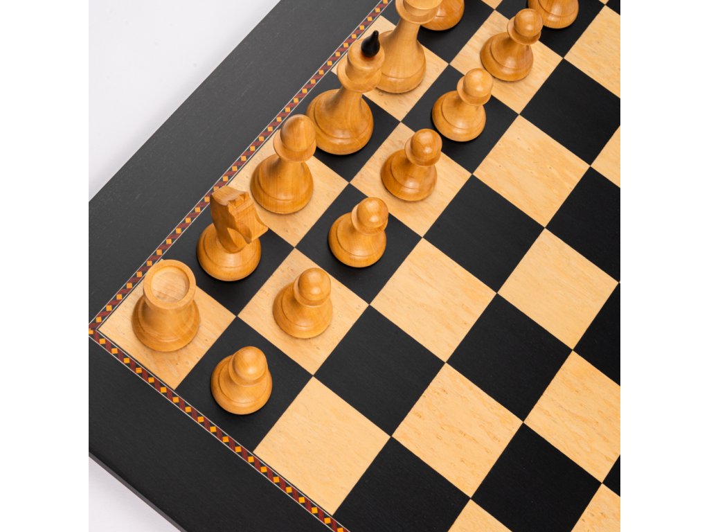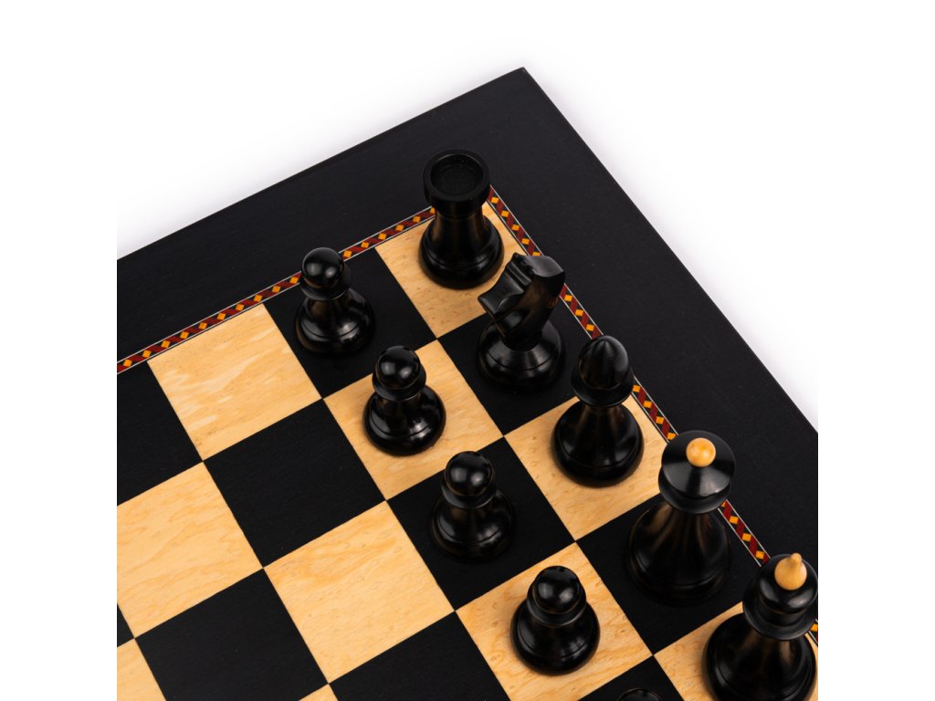 Jedes Detail dieses Sets wurde sorgfältig entworfen, um bei jedem Spiel ein einzigartiges Erlebnis zu bieten. Das Brett ist ein Kunstwerk für sich, hergestellt aus hochwertigem Holz und mit einer außergewöhnlichen Oberfläche. Die ebenso sorgfältig gefertigten Spielfiguren sind im Sockel mit Blei beschwert, um eine unvergleichliche Stabilität zu gewährleisten.