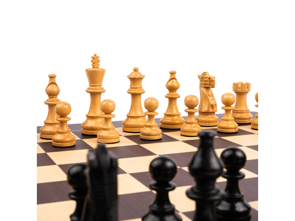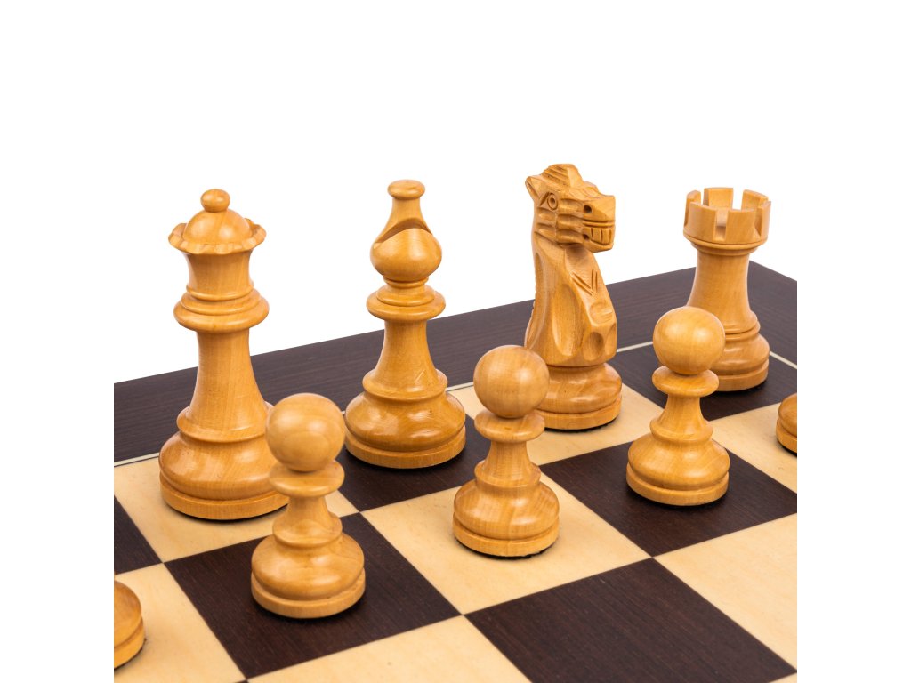 Jedes Detail dieses Sets wurde sorgfältig entworfen, um bei jedem Spiel ein einzigartiges Erlebnis zu bieten. Das Brett ist ein Kunstwerk für sich, hergestellt aus hochwertigem Holz und mit einer außergewöhnlichen Oberfläche. Die ebenso sorgfältig gefertigten Spielfiguren sind im Sockel mit Blei beschwert, um eine unvergleichliche Stabilität zu gewährleisten.