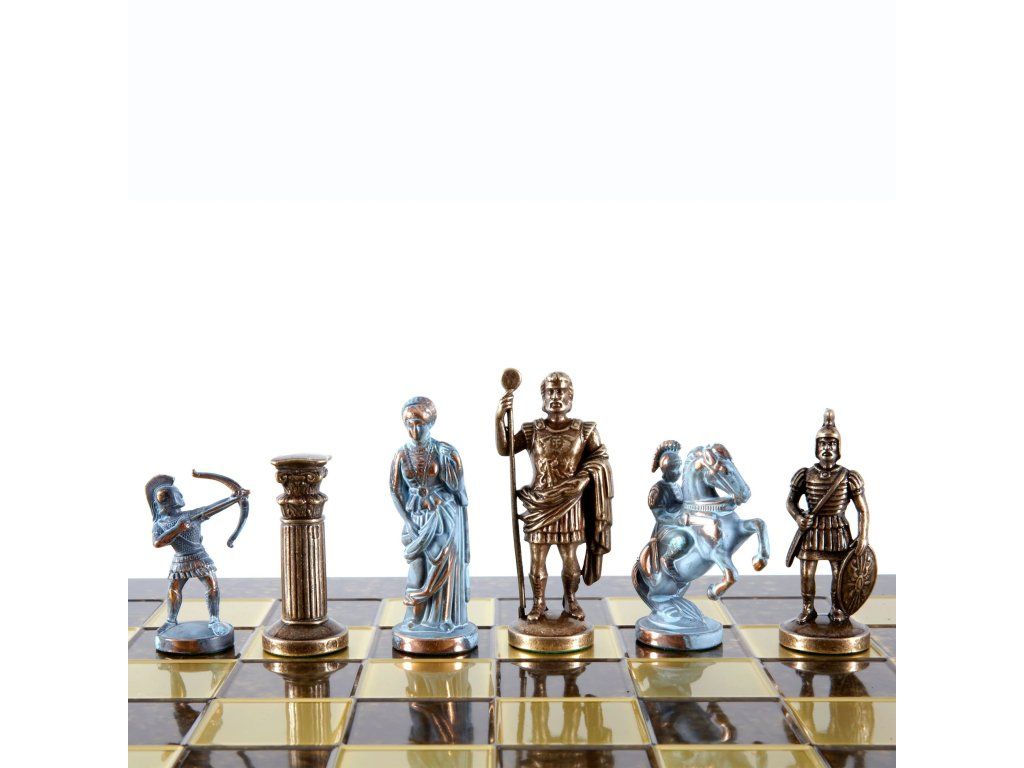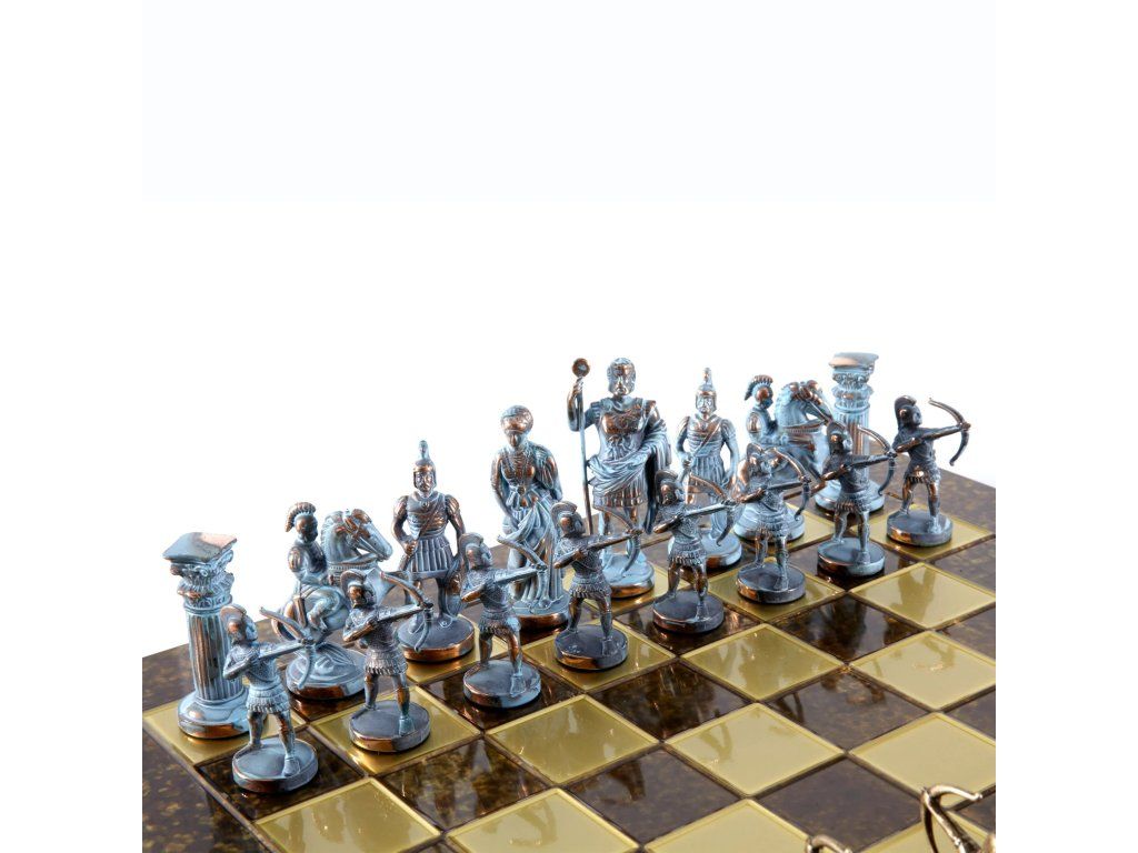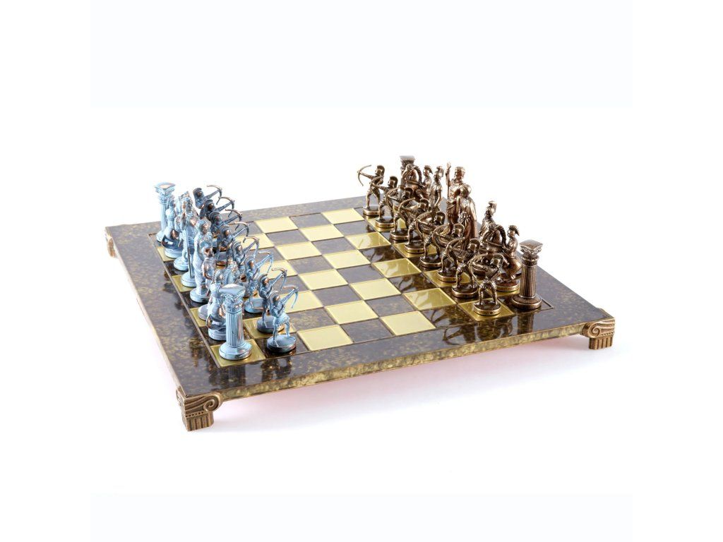 Wir präsentieren das elegante handgefertigte Schachset Archers, ein Meisterwerk, das die Kunst des Bogenschießens und historischer Schlachten verkörpert. Dieses große Set enthält sorgfältig gefertigte blaue und bronzene Schachfiguren, ergänzt durch ein beeindruckendes bronzenes Metallschachbrett.