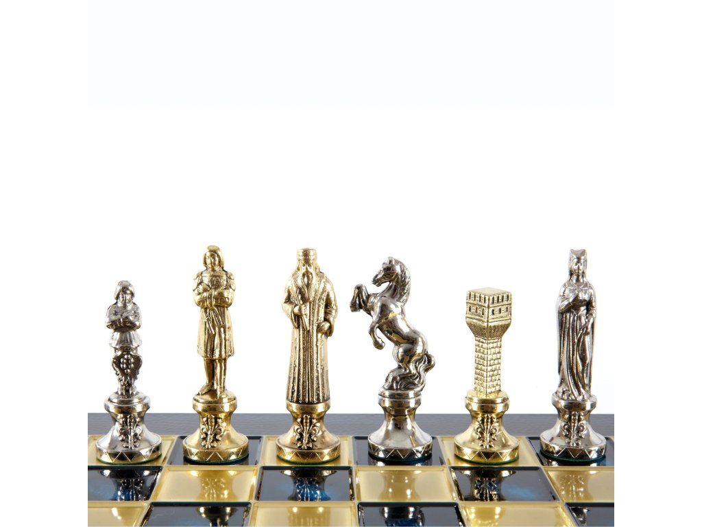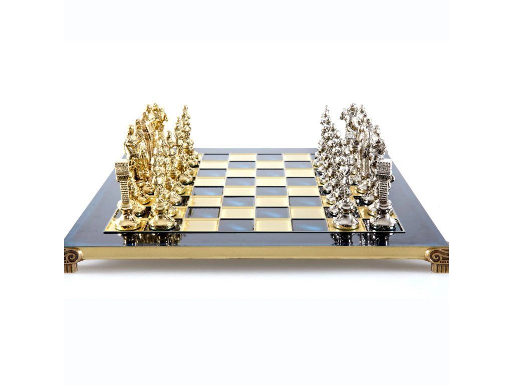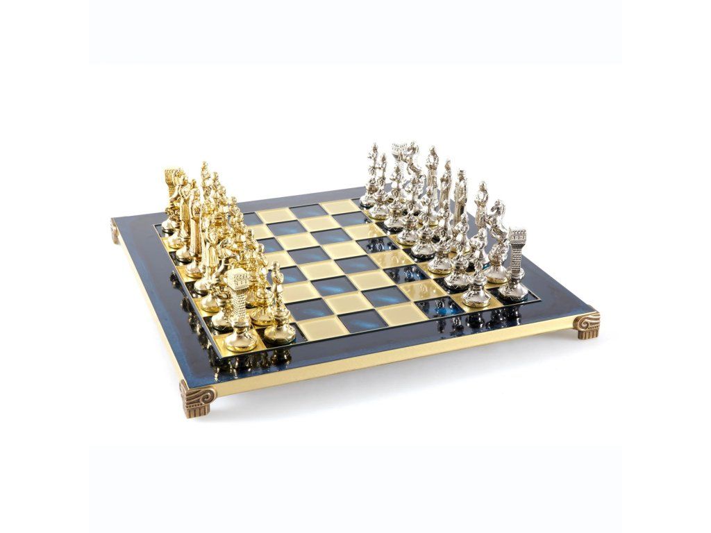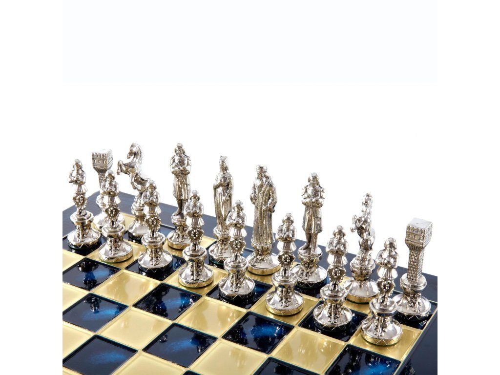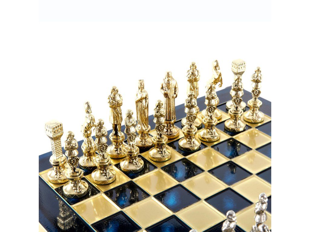 Tauchen Sie mit diesem handgefertigten Renaissance-Schachset in das kulturelle Erwachen der Renaissance ein. Dieses mittelgroße Set enthält elegante, schlanke und symbolisch verzierte goldene und silberne Schachfiguren auf einem bronzenen Schachbrett von 36 x 36 cm und feiert die Wiedergeburt klassischer griechischer Werte.