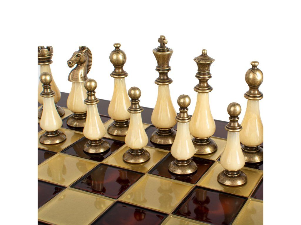 - Bronzeschachbrett mit den Maßen 44 x 44 cm, ideal für mittelgroße Räume
