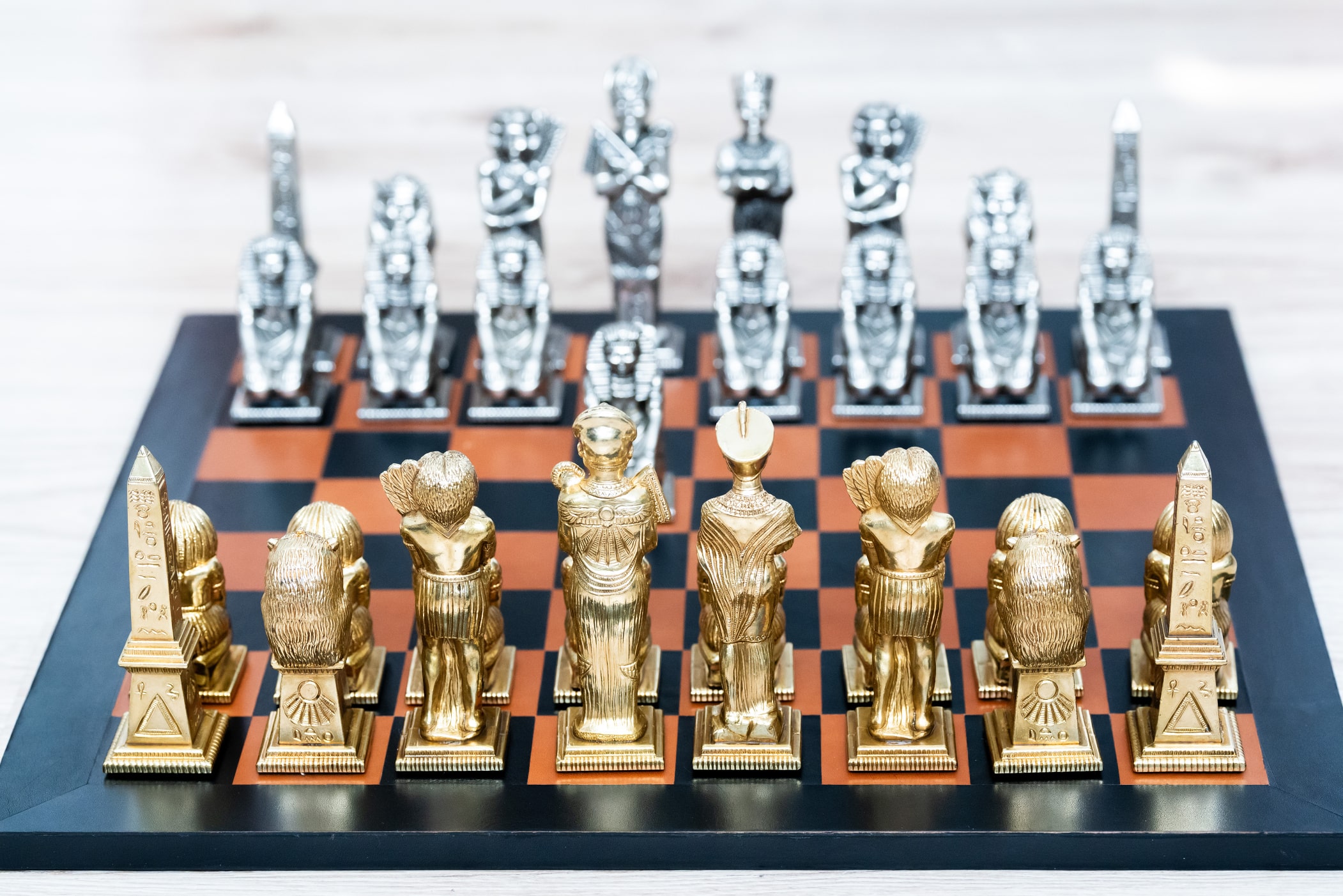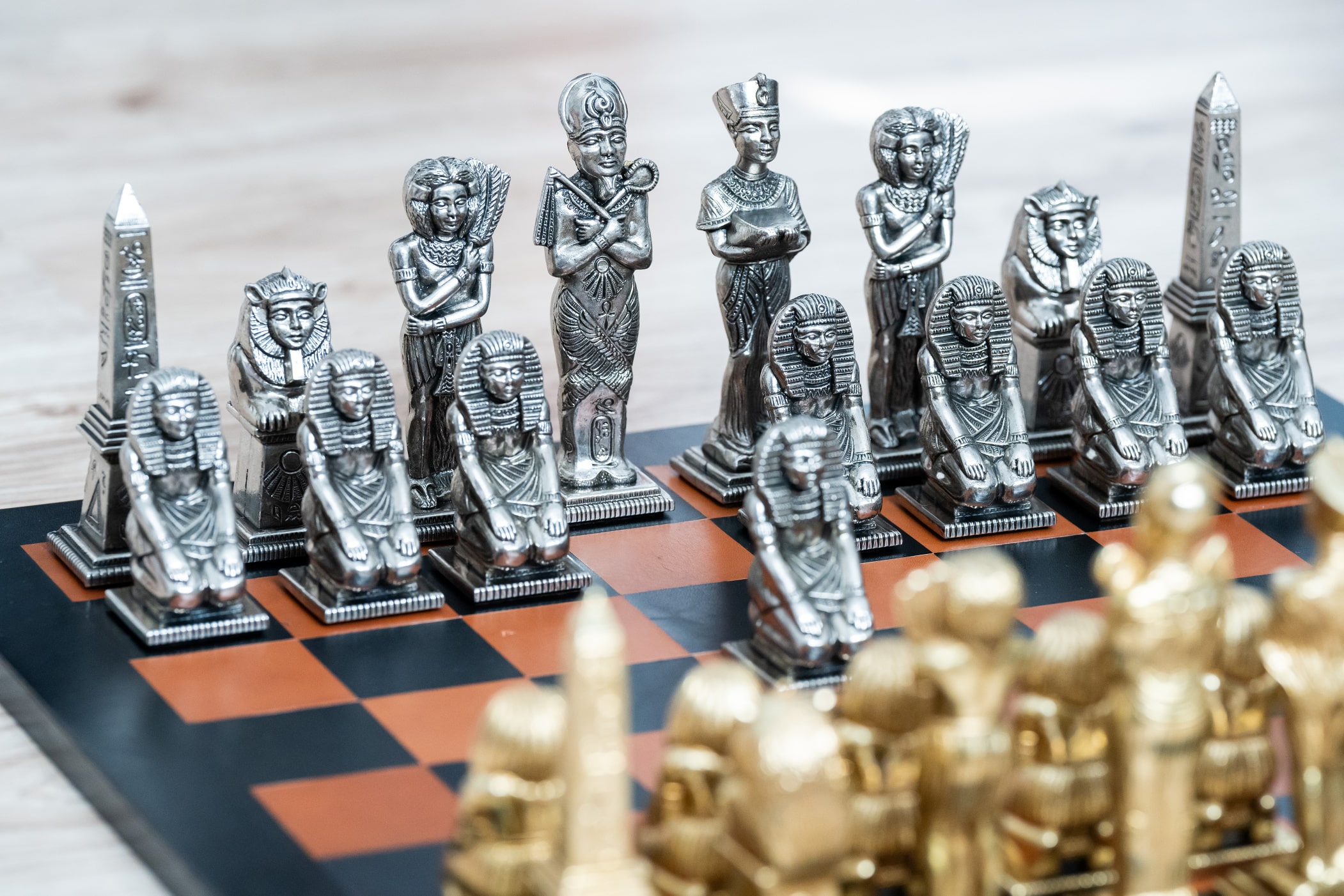 Reisen Sie zurück in die alten Tage der Pharaonen, wo Strategie und Weisheit mehr wert waren als Gold. Das Schachset Erbe des Pharao ist eine Hommage an das alte Ägypten, seine Geheimnisse und seine Pracht. Jeder Zug auf dem luxuriösen Lederschachbrett erinnert an die alten Duelle der Könige und die großen Denker, die die Geschichte geprägt haben. Detailliert geschnitzte Figuren, inspiriert von ikonischen ägyptischen Figuren, verleihen dem Spiel einen einzigartigen historischen Touch und einen Hauch von Unsterblichkeit.