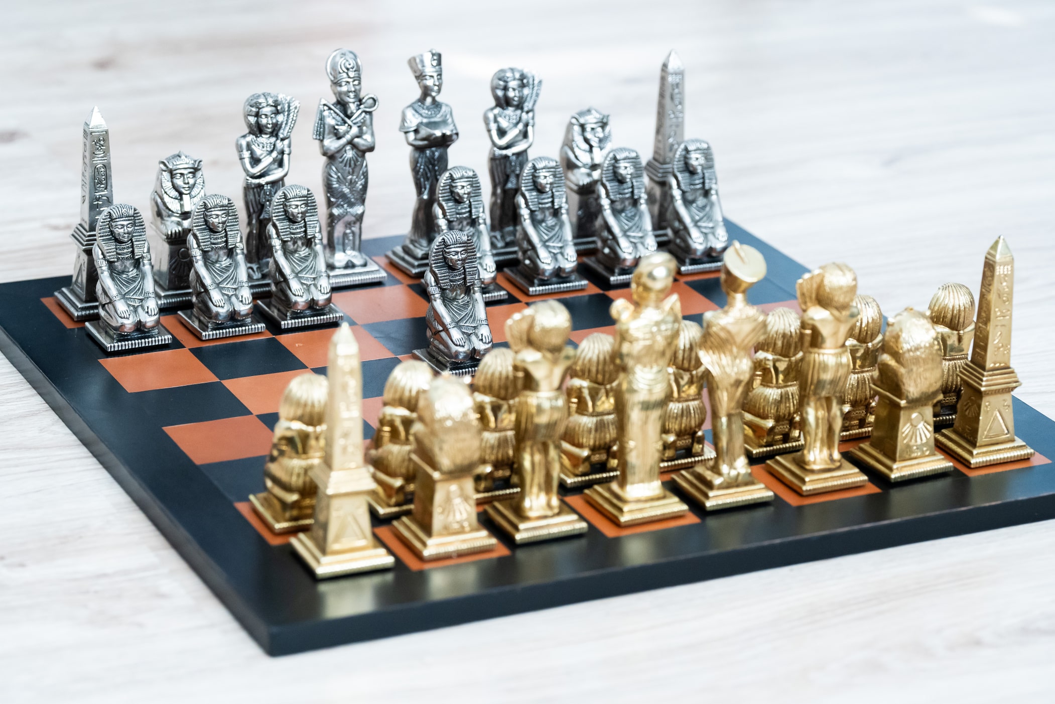 Dieses Set ist nicht nur ein gewöhnliches Spiel, sondern ein Kunstwerk, das handwerkliche Perfektion mit majestätischer Symbolik verbindet. Jede Figur trägt den Geist der ägyptischen Zivilisation in sich - vom mächtigen Pharao bis zum geheimnisvollen Sphinx-Reiter. Das lederne Schachbrett verleiht dem Set einen exklusiven Charakter und unterstreicht seine luxuriöse Verarbeitung. Ob Sie es als Dekoration ausstellen oder in ein faszinierendes Spiel eintauchen, es wird immer ein Symbol für königliche Eleganz und zeitlose Weisheit sein.