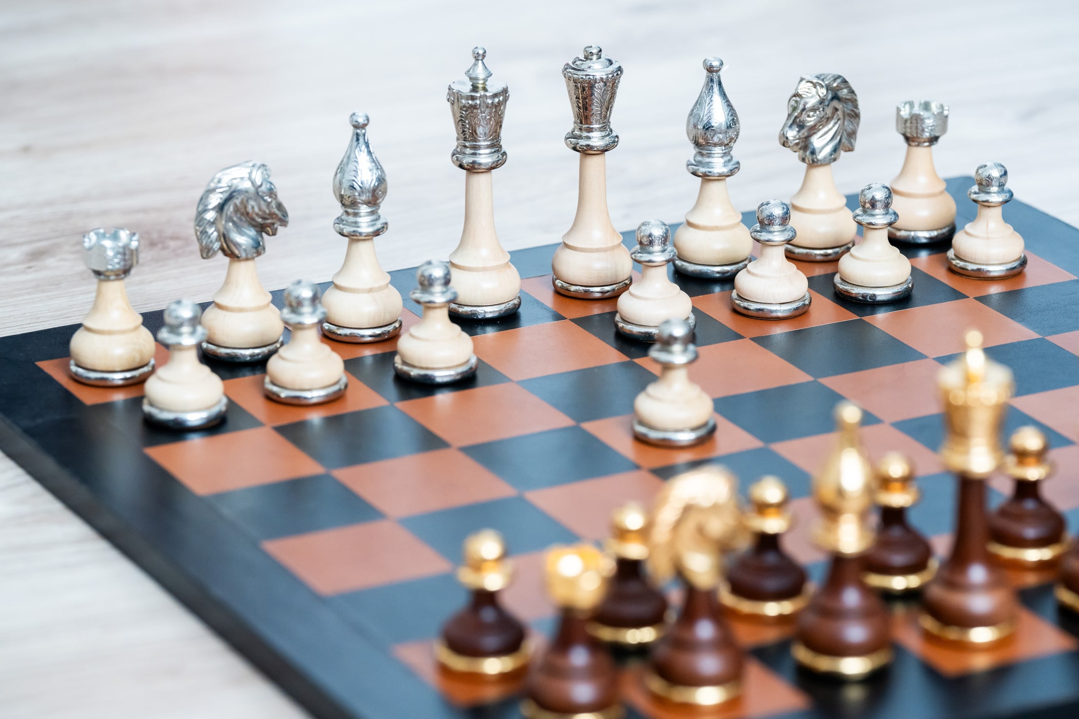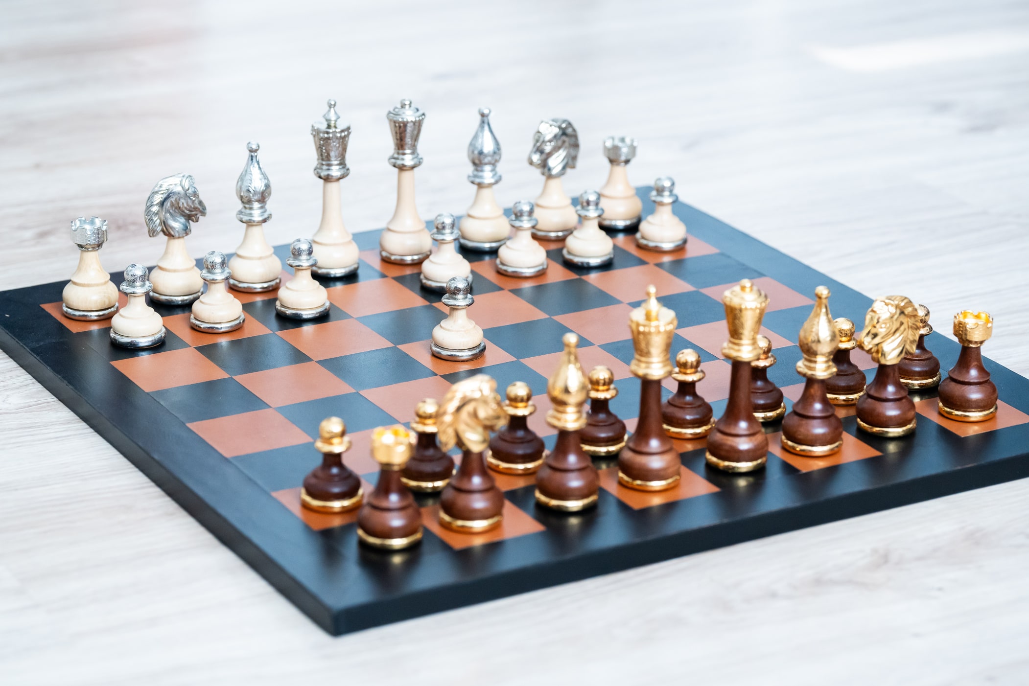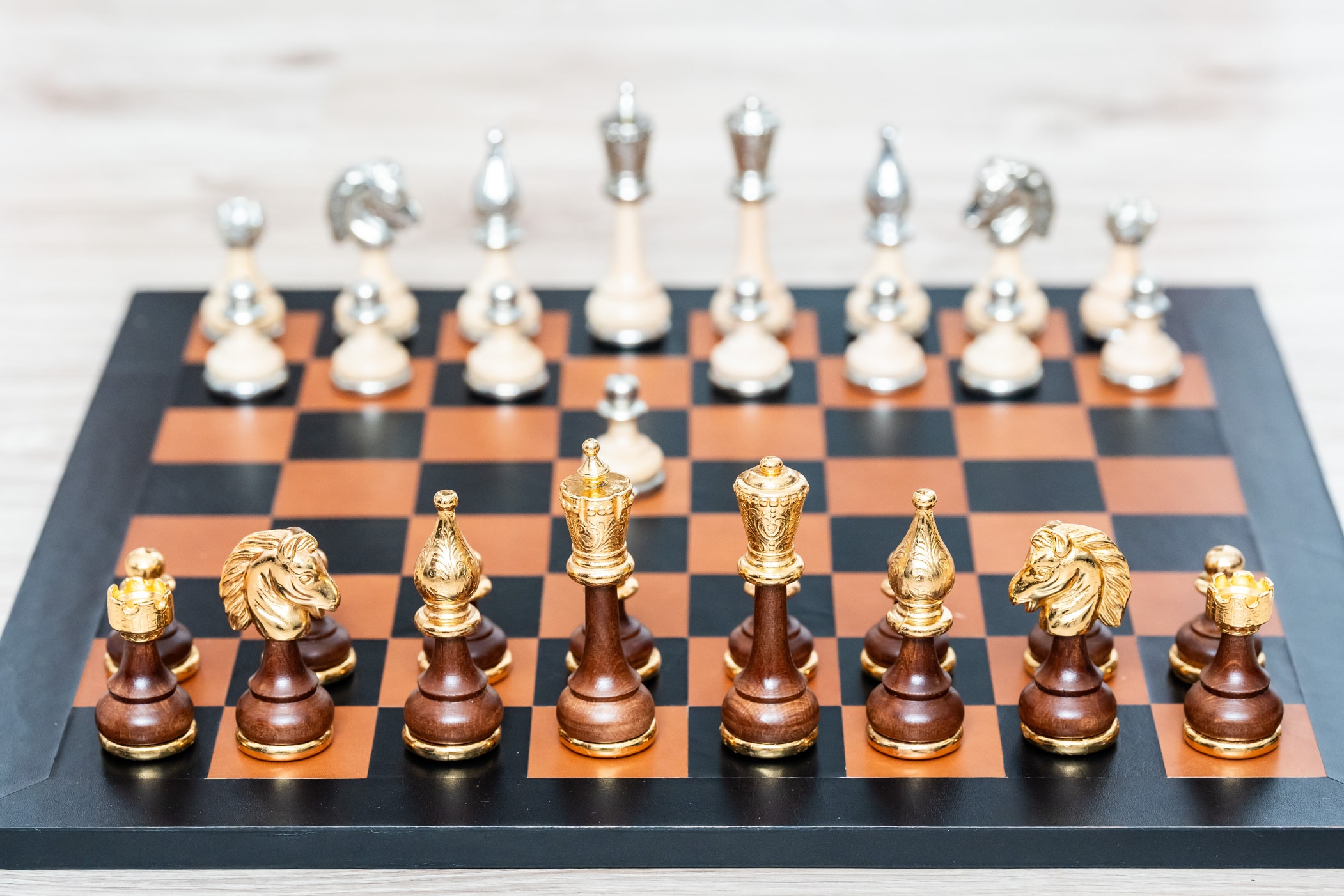 Material der Schachfiguren: | Holz, gold-silbernes Metall |