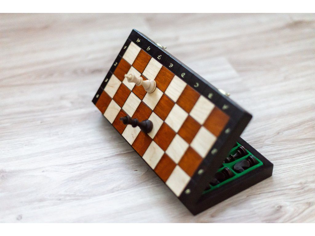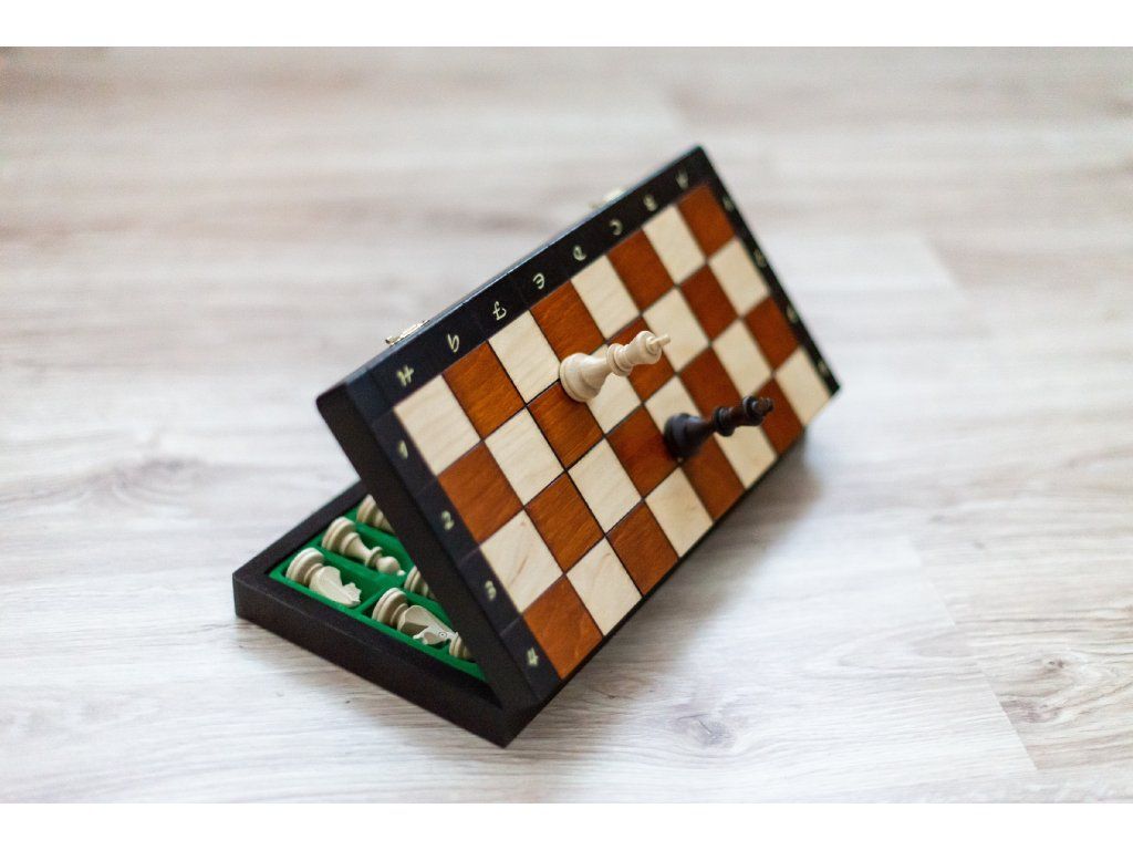 Magnetisches Holzschachset, geeignet für Reisen.