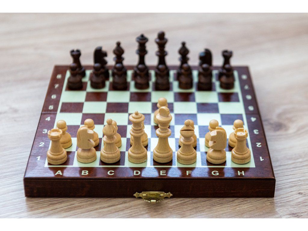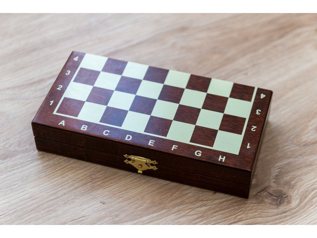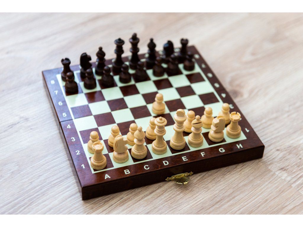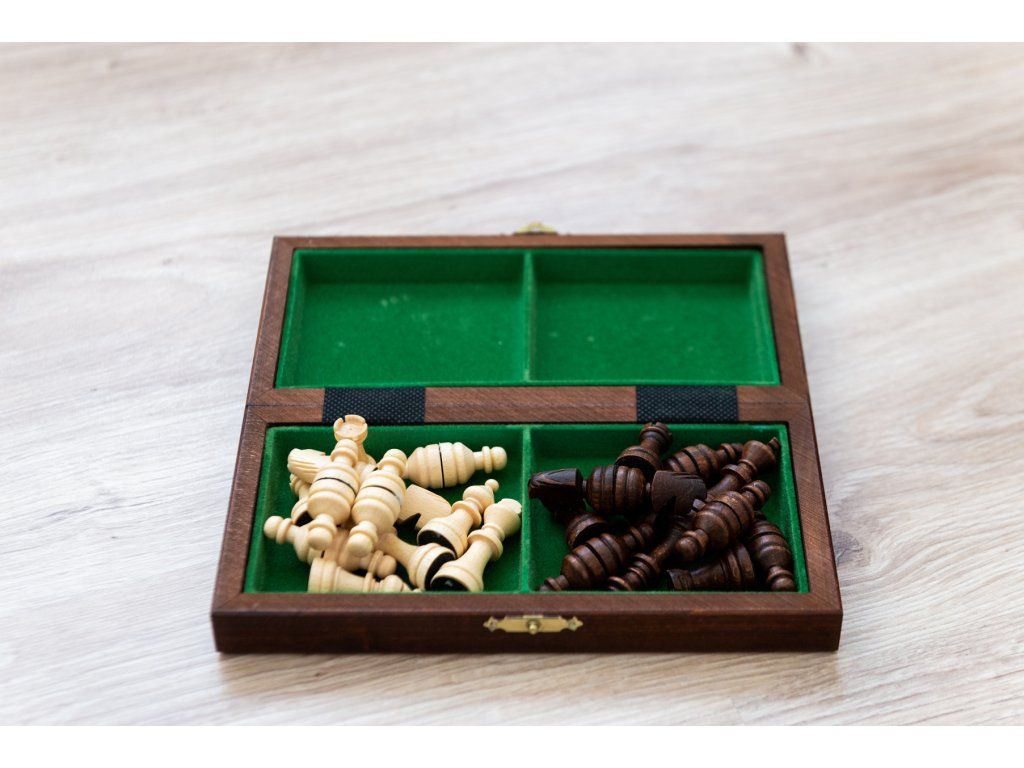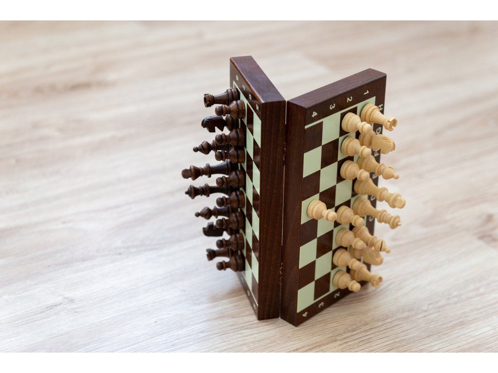 Praktisches kleines Holzschachset mit Magneten in den Figuren, sowohl für Reisen als auch für das Freizeitspiel geeignet.