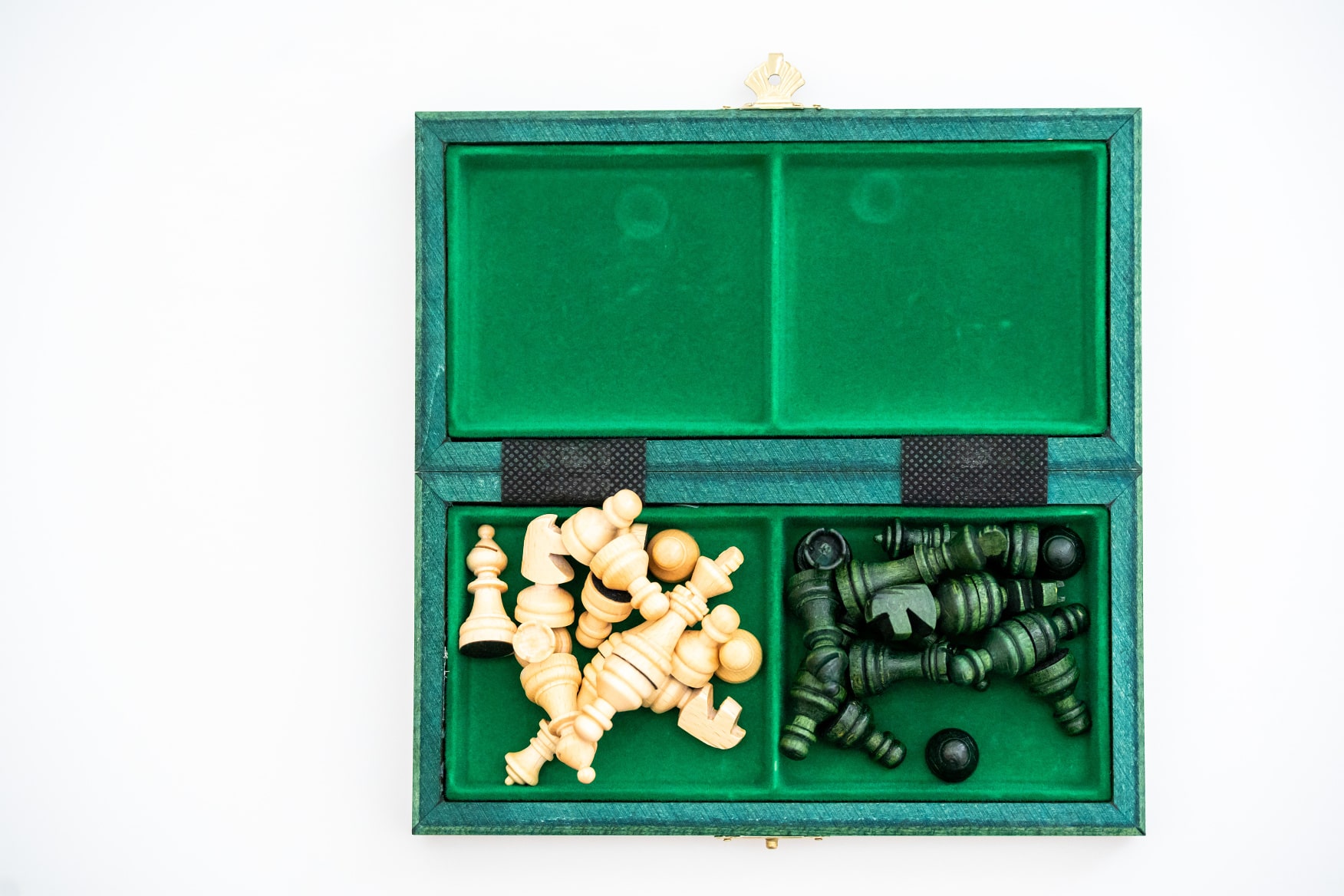 Das Schachspiel aus qualitativem Holz, mit einem dezenten grünen Anstrich, der durch seine Einzigartigkeit ins Auge sticht, wird zum unverzichtbaren Begleiter für jeden Schachliebhaber.