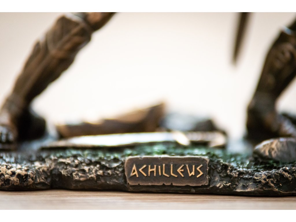 Apollo lenkte den Flug des Pfeils in Achilles' unbedeckte Ferse. Achilles riss den Pfeil aus seiner Ferse, doch dann zerrissen seine Haken seine Adern, und seine Kraft und sein Leben flohen mit seinem Blut, wofür er Apollo und Troja verfluchte.