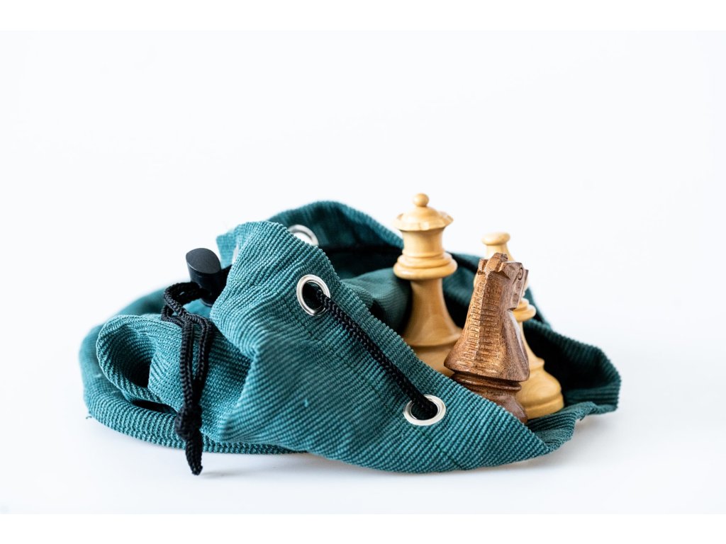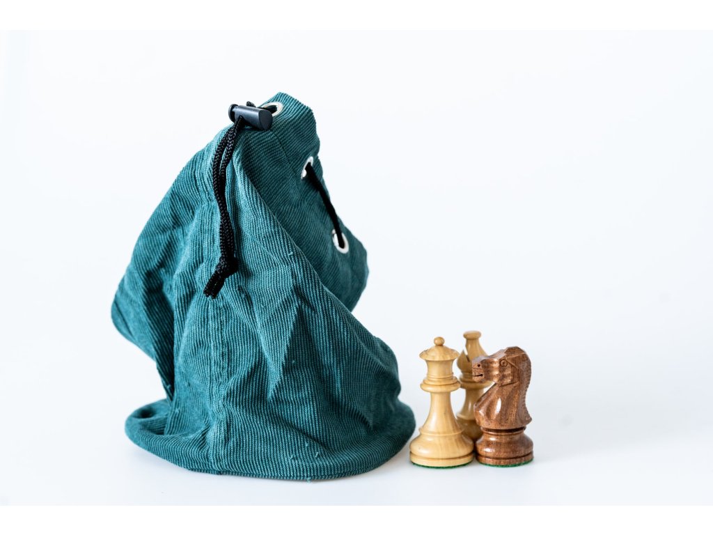 Grüner Beutel für Schachfiguren mit Kordelzug