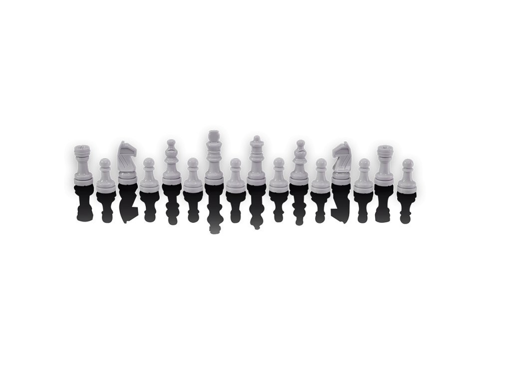 Figurensatz mit Verchromung (weiße Figuren) und Schwarz-Verchromung (schwarze Figuren)