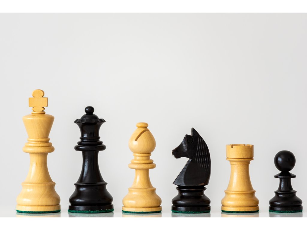 Die Figuren sind lackiert und ausgeglichen. Das Set enthält eine weiße und eine schwarze Ersatzdame.