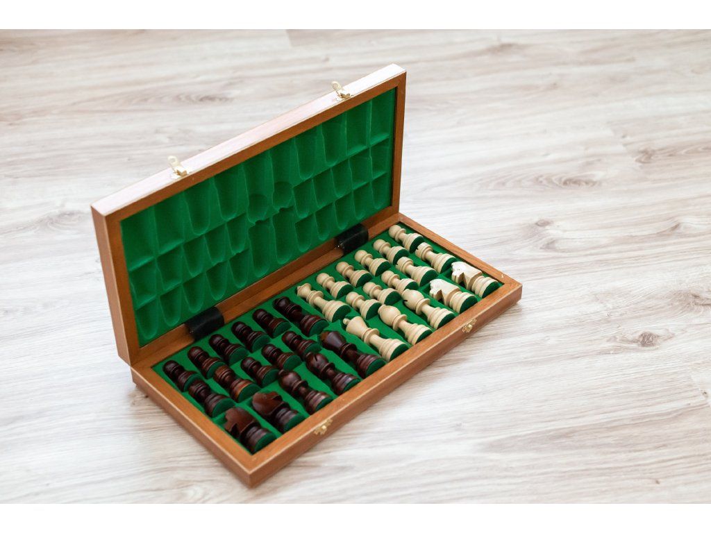 | Typ des Schachbretts: | klappbares, mit dem Speicherplatz für Figuren |