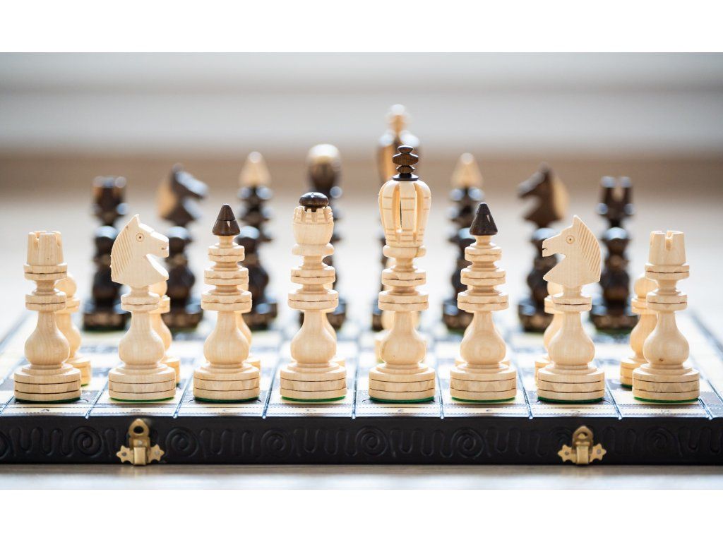 Schachspiel geeignet als Geschenk oder für zu Hause. Die Größe der Figuren sowie des Schachbretts ist beeindruckend und unübersehbar.