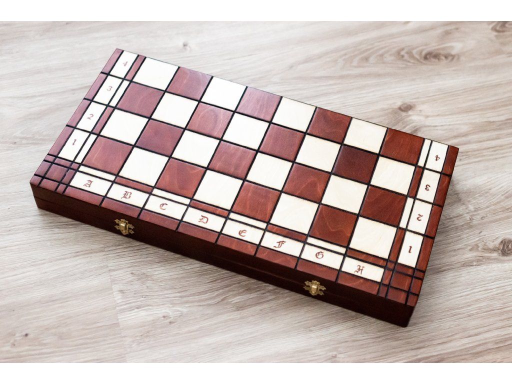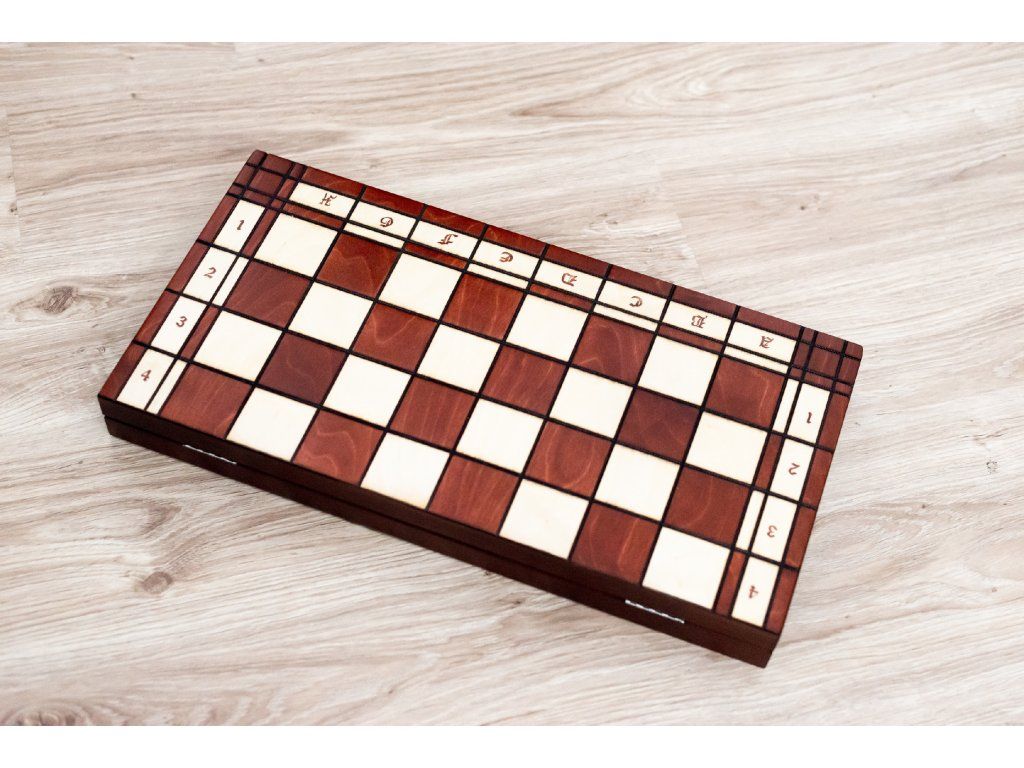 | Typ des Schachbretts: | klappbares, mit dem Speicherplatz für Figuren |