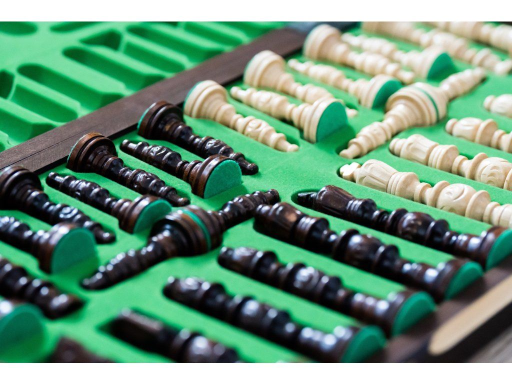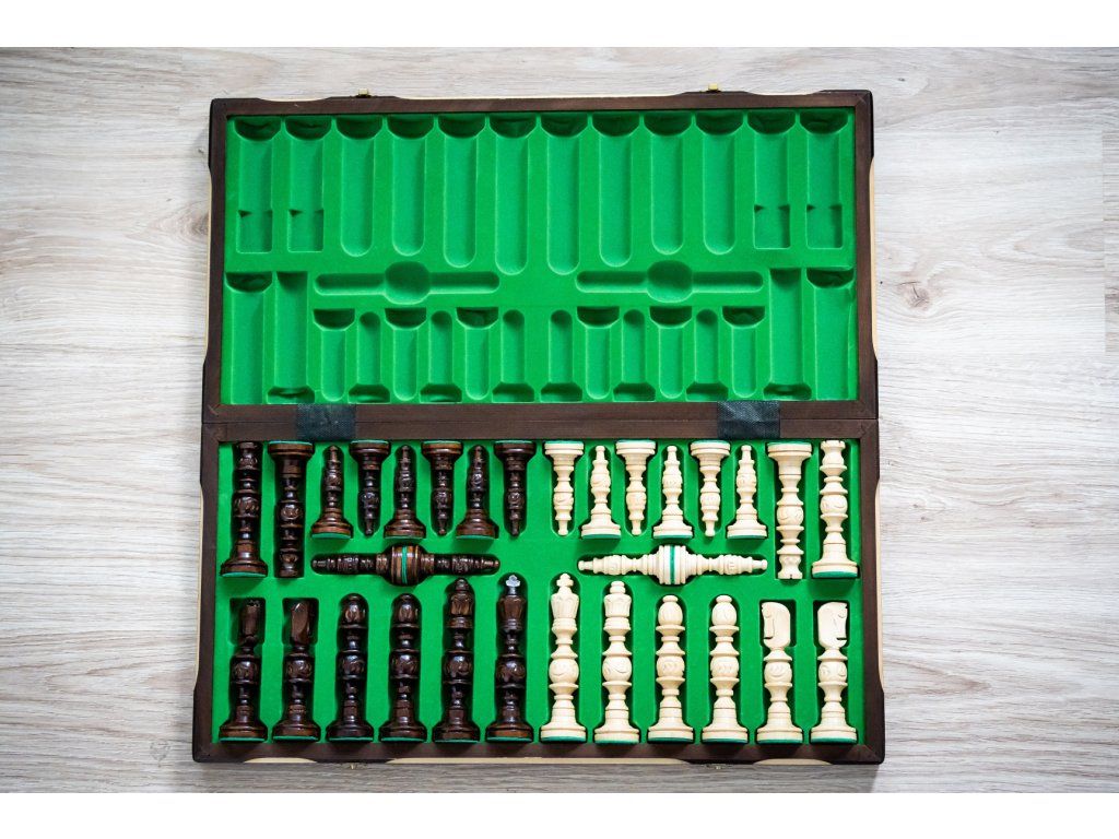 | Typ des Schachbretts: | klappbares, mit dem Speicherplatz für Figuren |