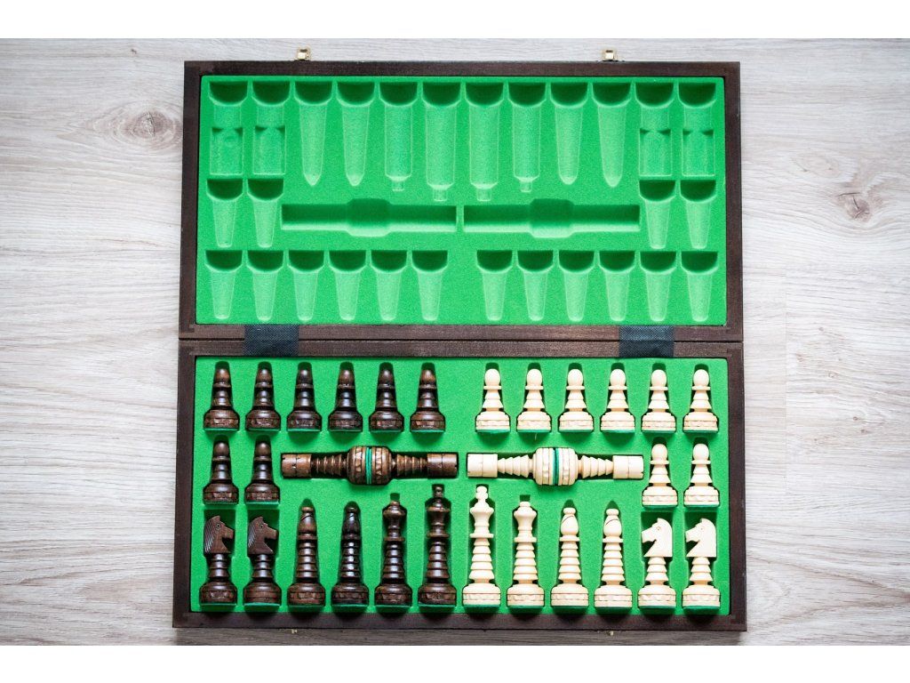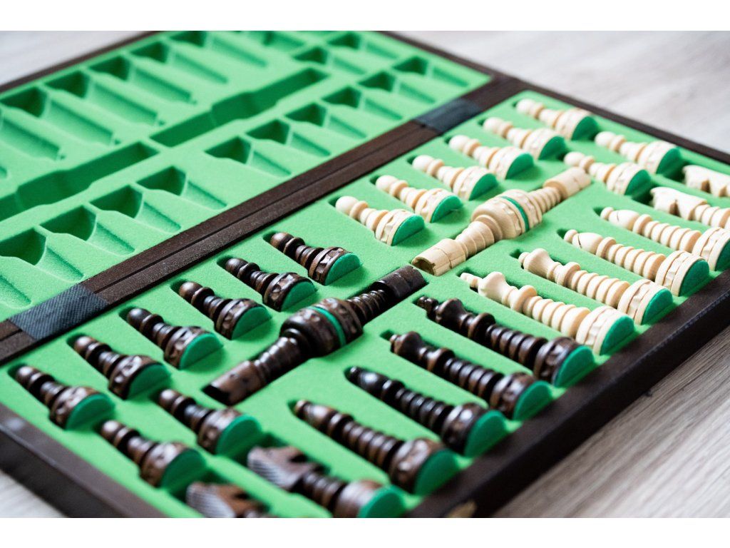 | Typ des Schachbretts: | klappbares, mit dem Speicherplatz für Figuren |