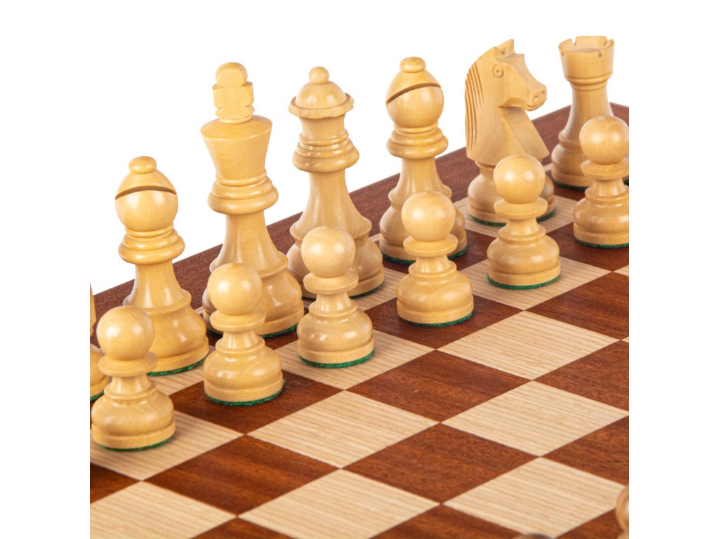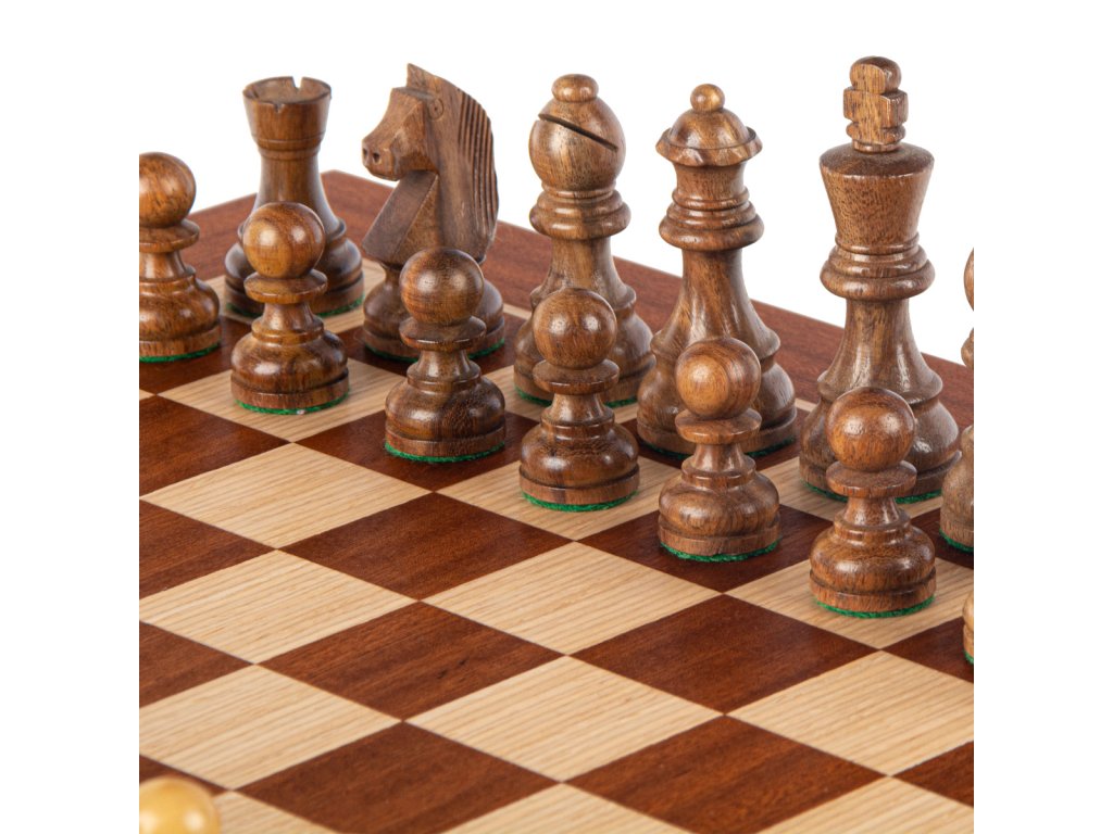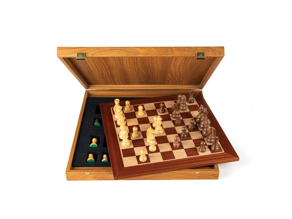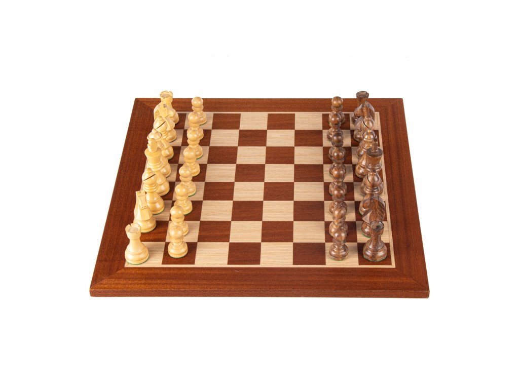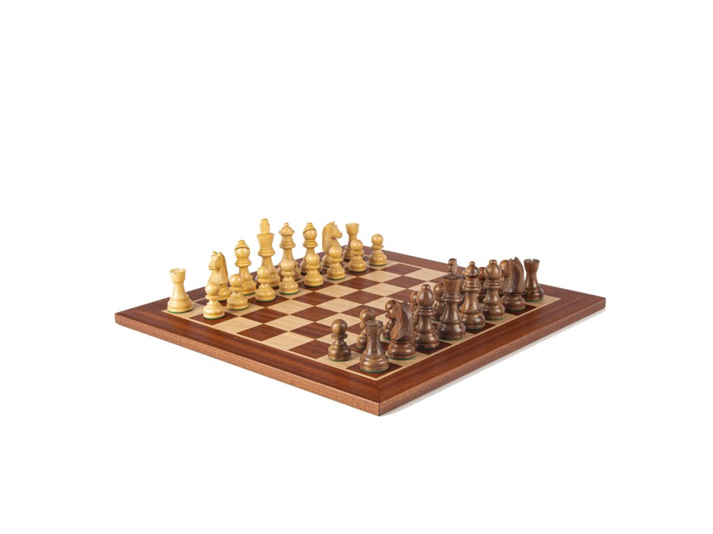 Schachbrett: Mahagoni / Eiche Schachfiguren: Sheesham, Buchsbaum