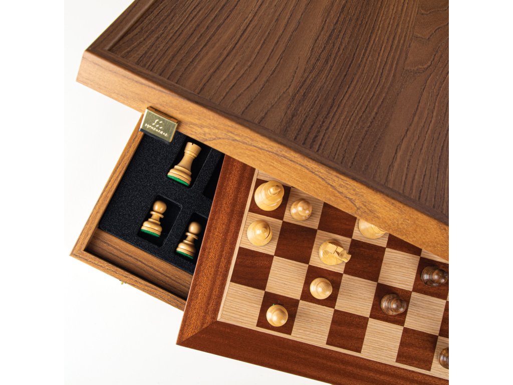 Das Schachbrett hat ein kompliziertes Intarsien-Design, das Ihrer Spielesammlung einen Hauch von Raffinesse und Eleganz verleihen wird.
