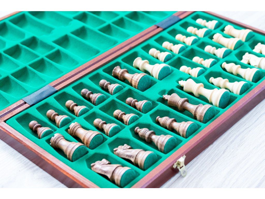 | Typ des Schachbretts: | klappbares, mit dem Speicherplatz für Figuren |