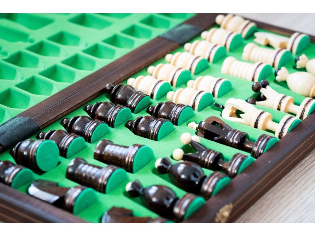 | Typ des Schachbretts: | klappbares, mit dem Speicherplatz für Figuren |
