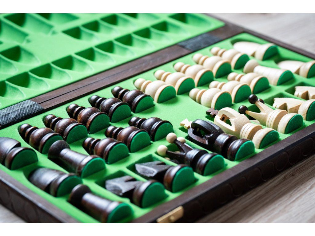 | Typ des Schachbretts: | klappbares, mit dem Speicherplatz für Figuren |
