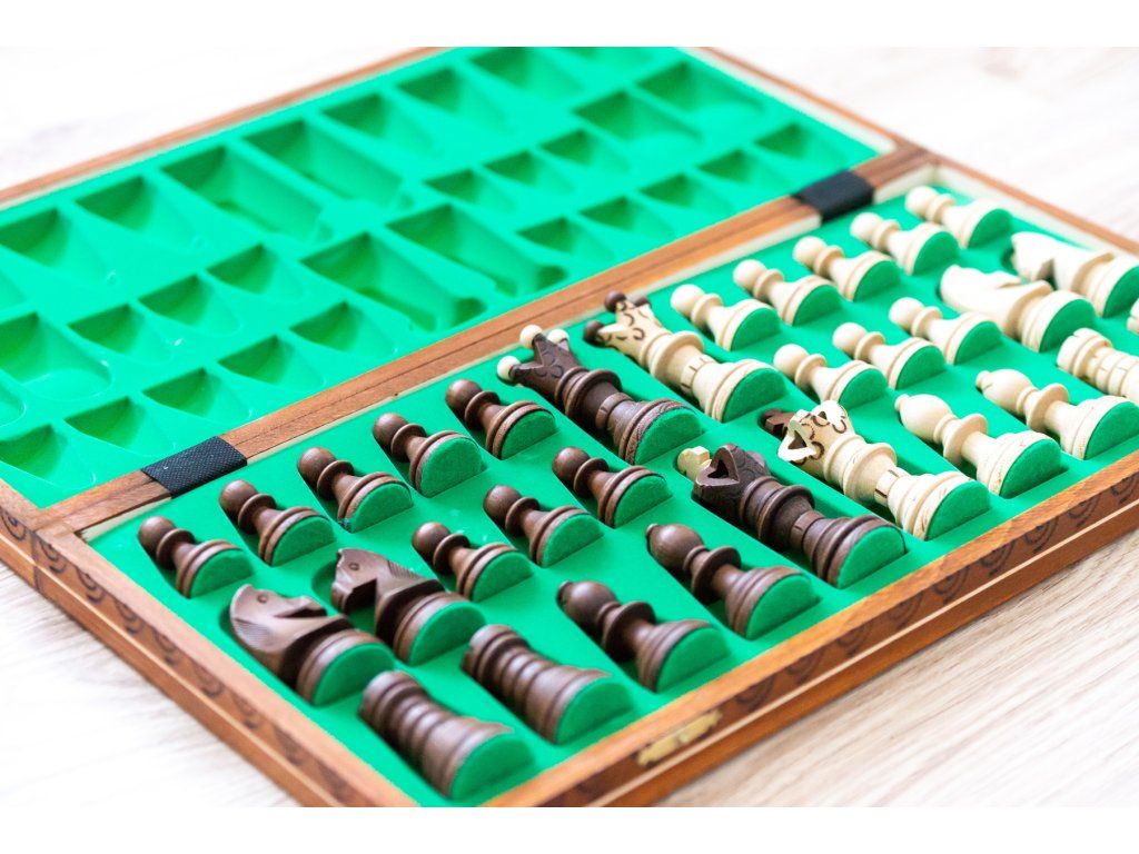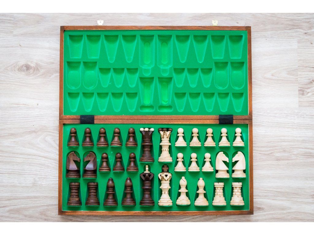 | Typ des Schachbretts: | klappbares, mit dem Speicherplatz für Figuren |