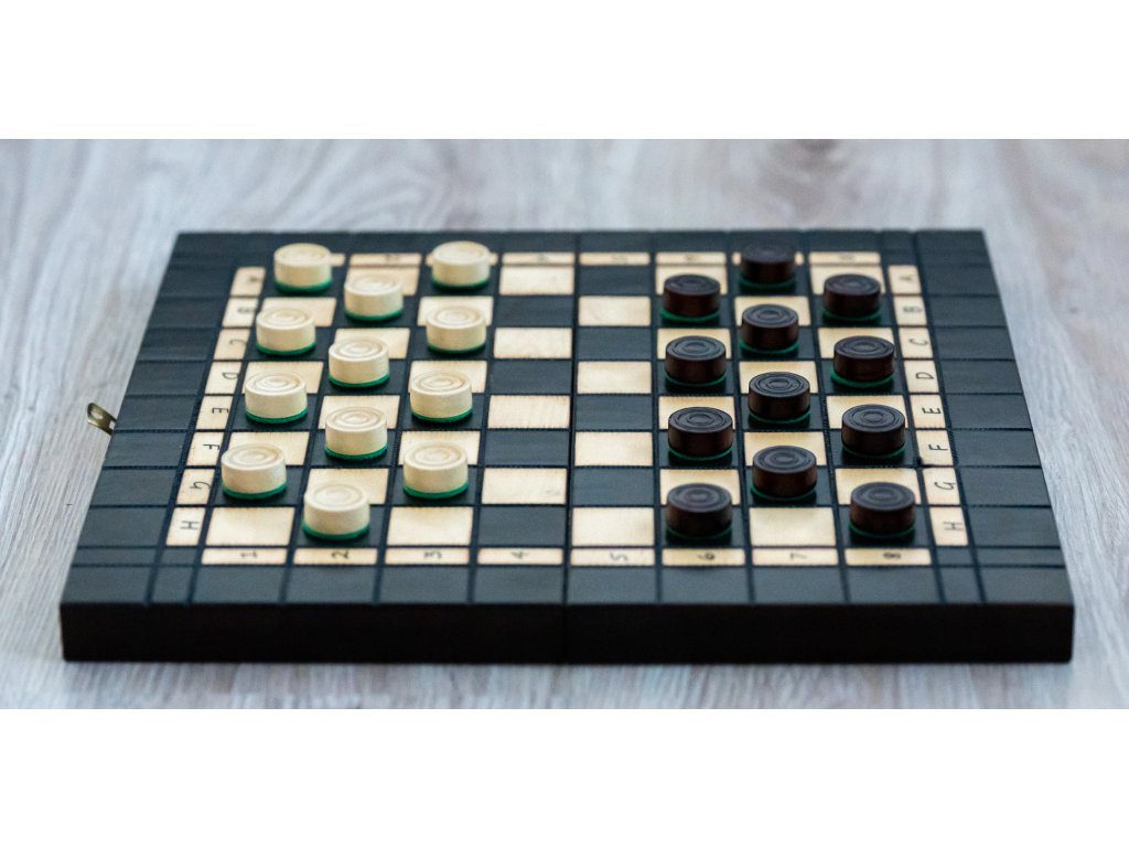 Holzschach- und Damespiel in Kombination sind das ideale "2 Brettspiele in einem" Paket.