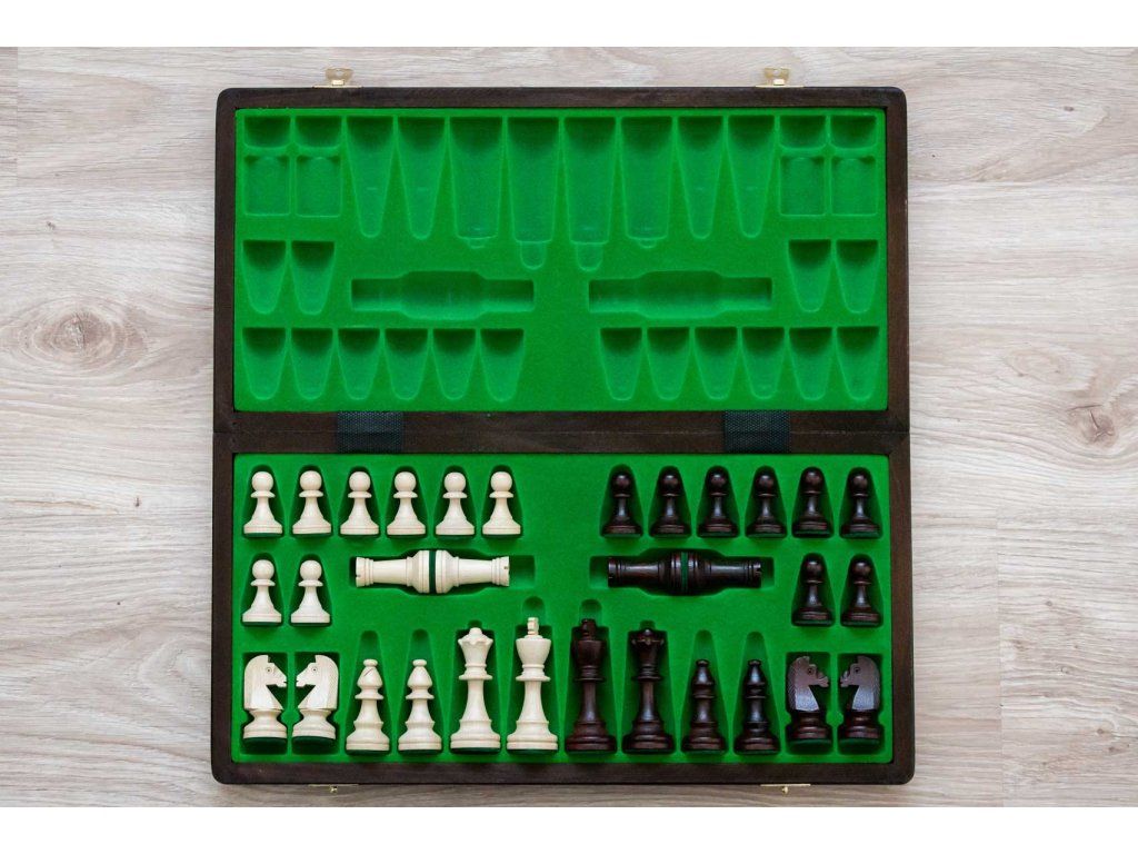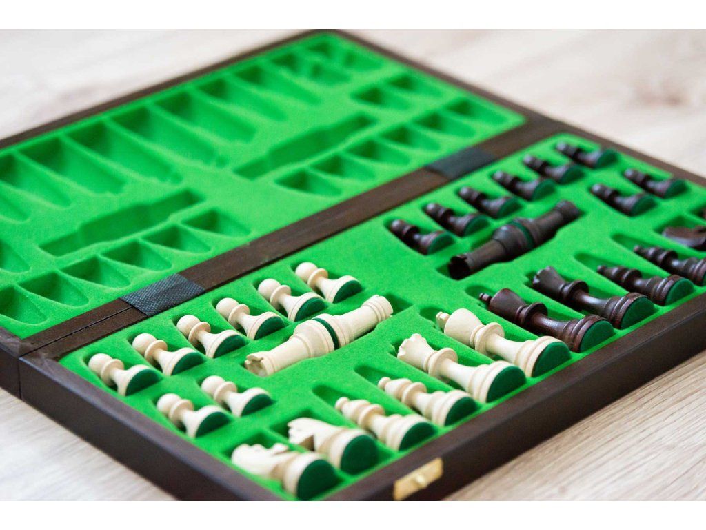 | Typ des Schachbretts: | klappbares, mit dem Speicherplatz für Figuren |