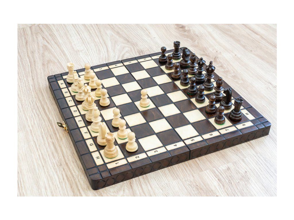 | Typ des Schachbretts: | klappbares, mit dem Speicherplatz für Figuren |