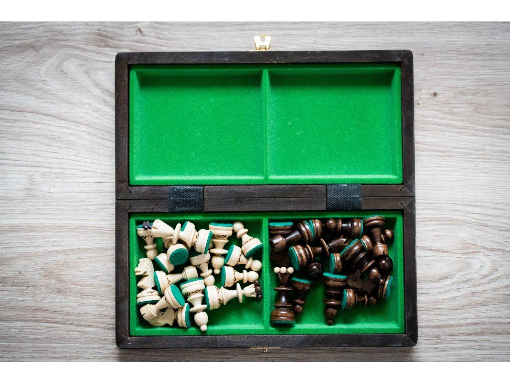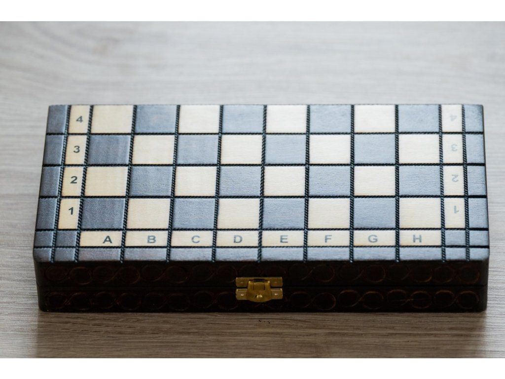 | Typ des Schachbretts: | klappbares, mit dem Speicherplatz für Figuren |