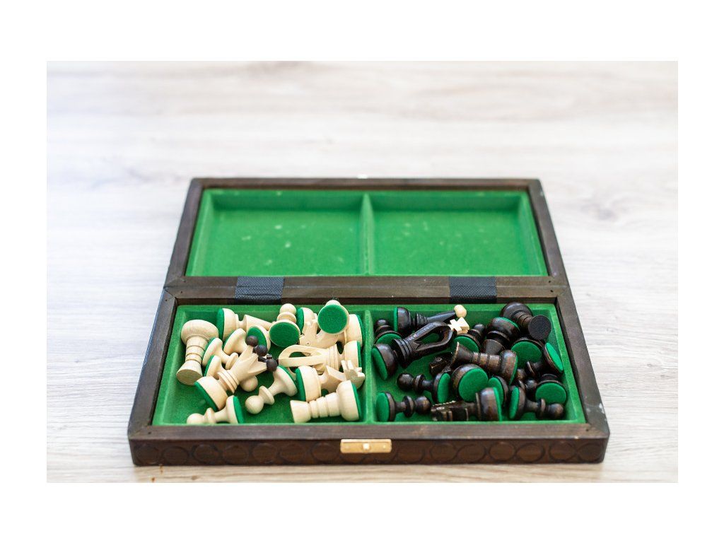 | Typ des Schachbretts: | klappbares, mit dem Speicherplatz für Figuren |
