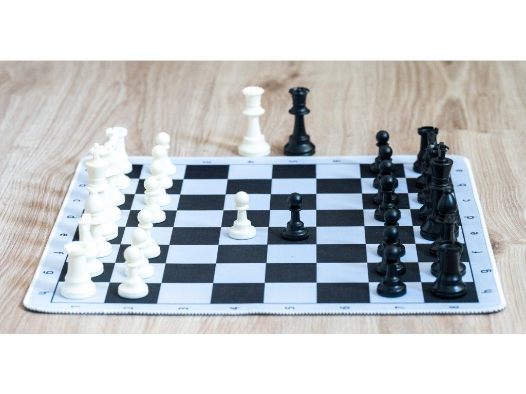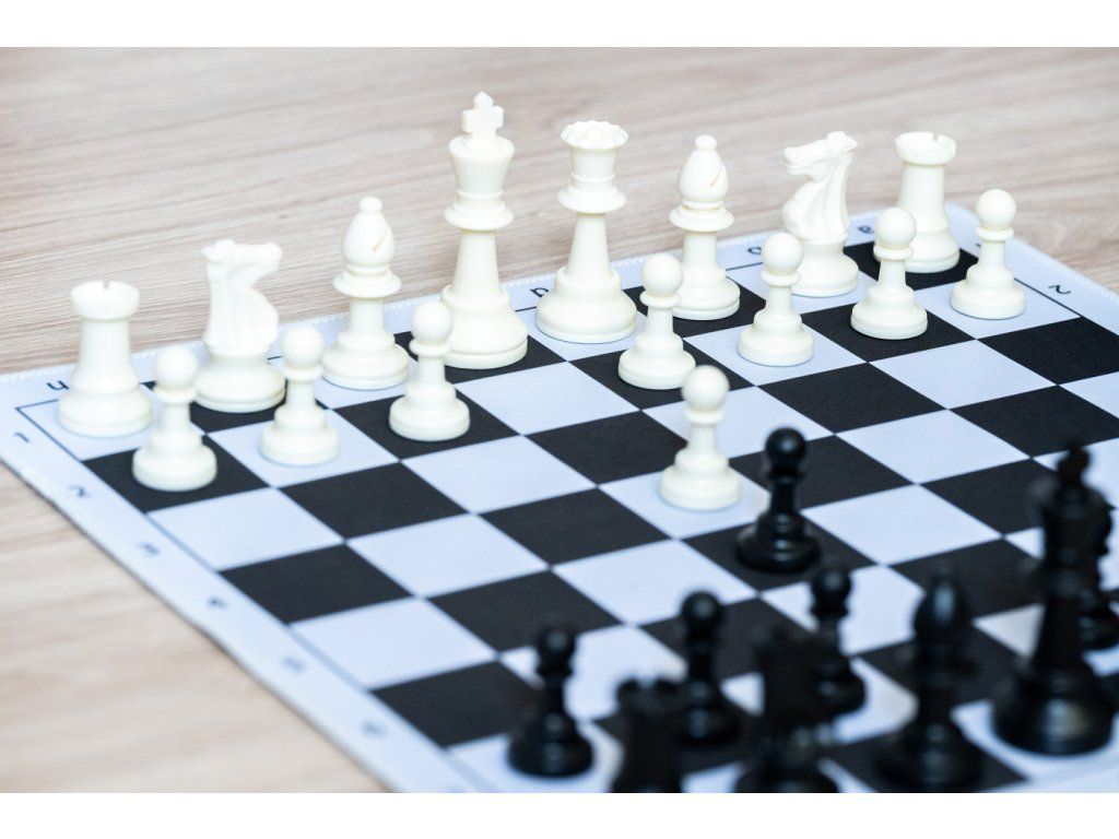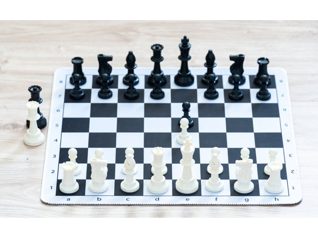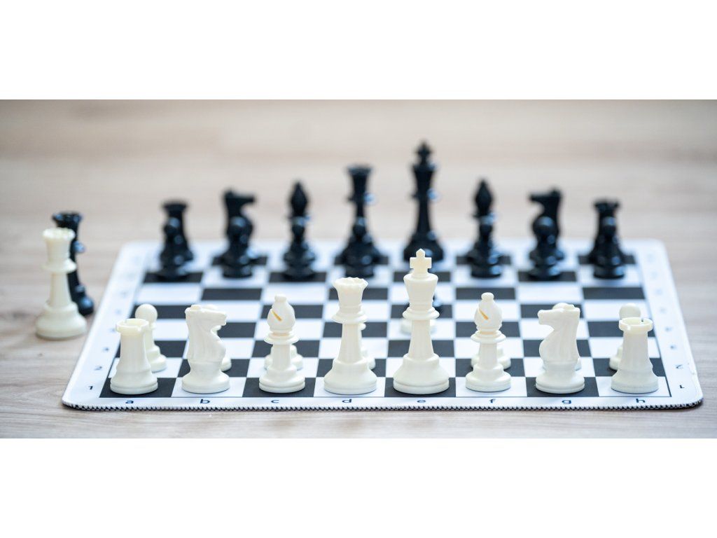 Das Schachset besteht aus einem sehr robusten rollbaren Schachbrett vom Typ Mouse Pad und aus traditionellen Schachfiguren aus festem und hochwertigem Kunststoff.