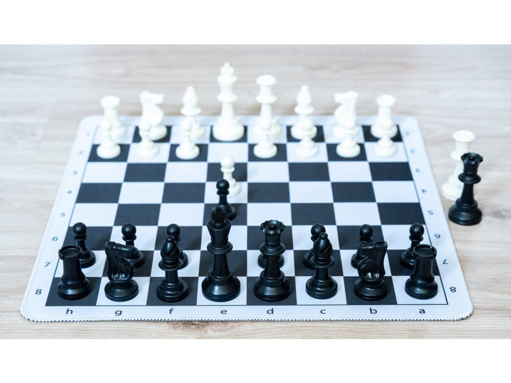 Schachset Staunton Big MousePad (schwarz) ist eine moderne und praktische Art, das traditionelle Spiel überall und jederzeit zu genießen. Die Kombination aus hochwertigen Kunststofffiguren im klassischen Staunton-Stil und einem rollbaren Schachbrett vom Typ „Mousepad“ schafft ein Set, das widerstandsfähig, transportabel und zugleich elegant ist.