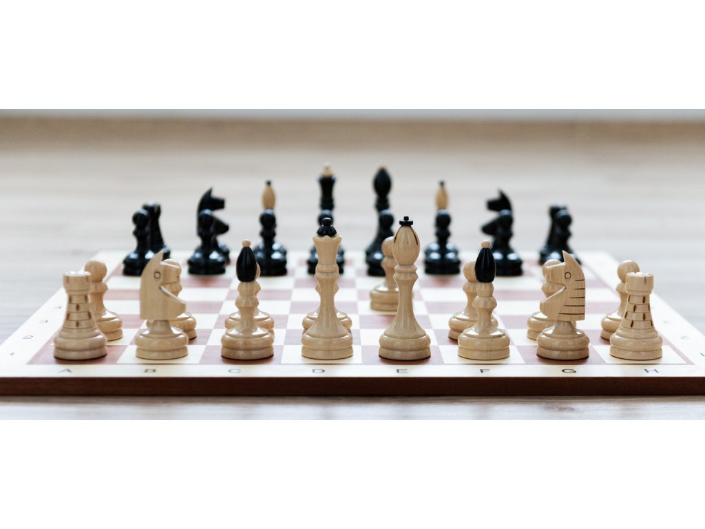 Rigid wooden chess board with original Czech Club chess pieces