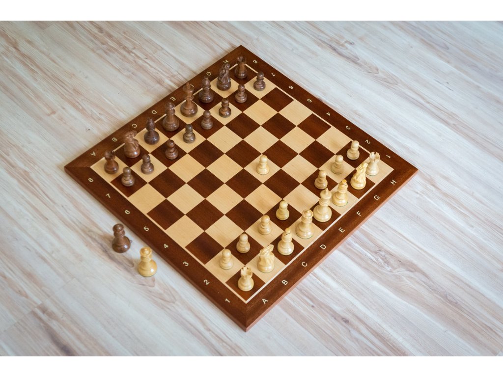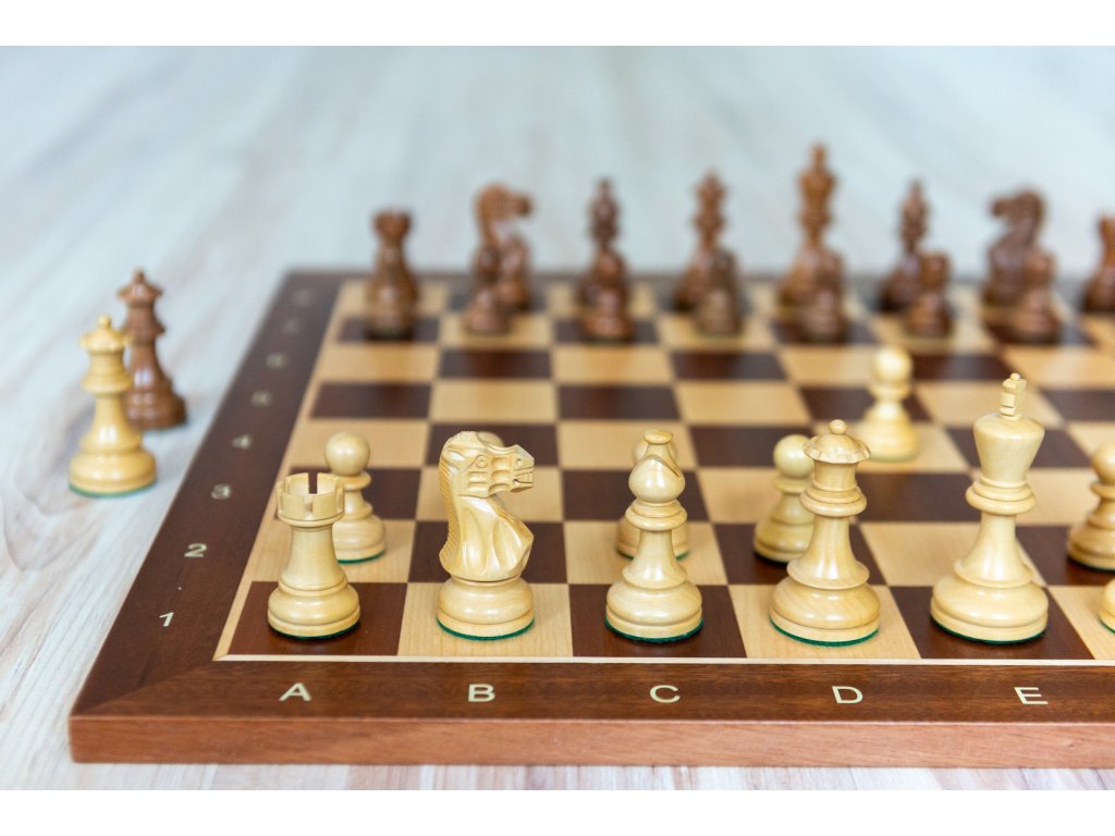 Das Schachbrett ist mit Randbeschriftung. Die Unterseite des Schachbretts ist mit einer weichen Unterlage versehen, die ein geräuschloses Auflegen ermöglicht und Abrieb verhindert.
