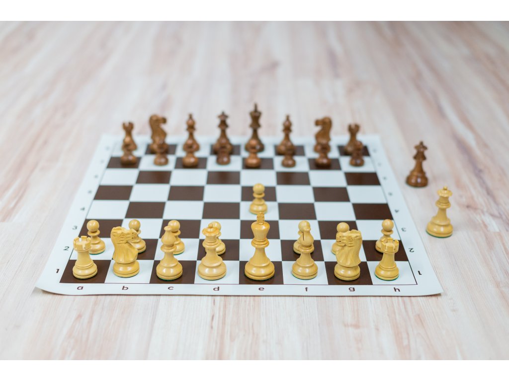Eine beliebte Version der Staunton-Figuren in luxuriöser Akazienholzausführung, gewichtet mit einer weichen Unterlage in einer Standard-Wettkampfgröße. Königshöhe : 8,9mm
