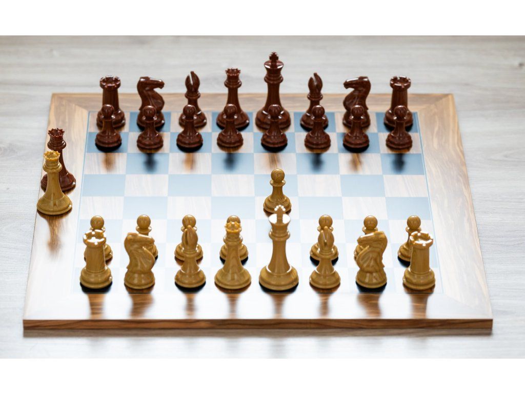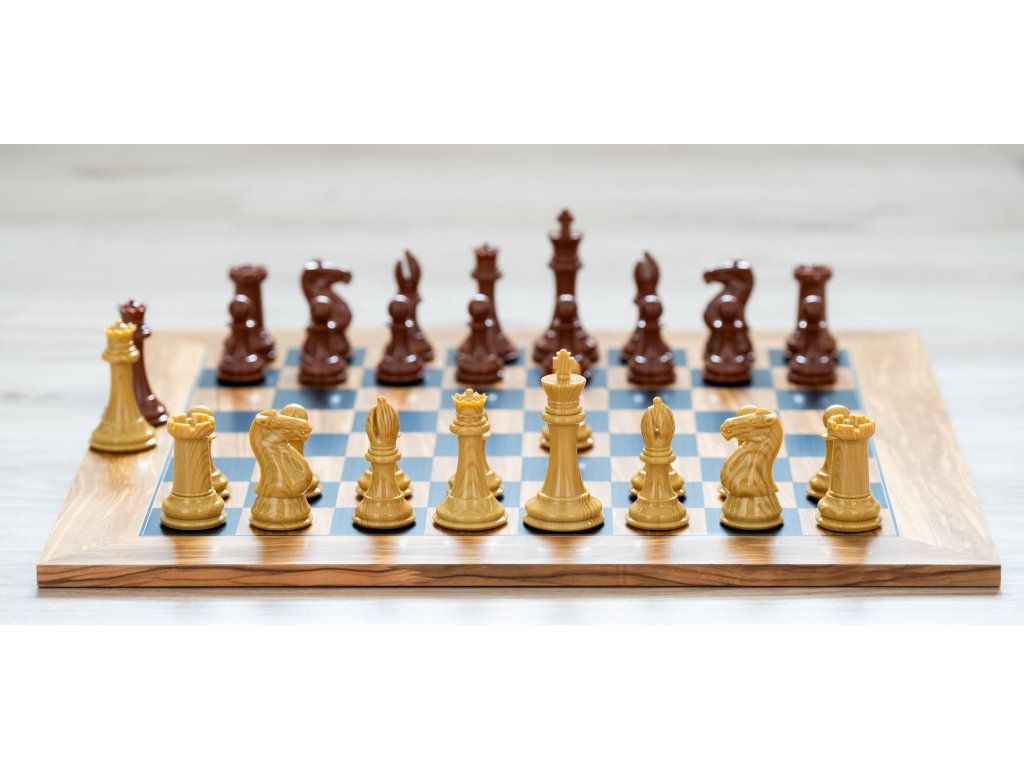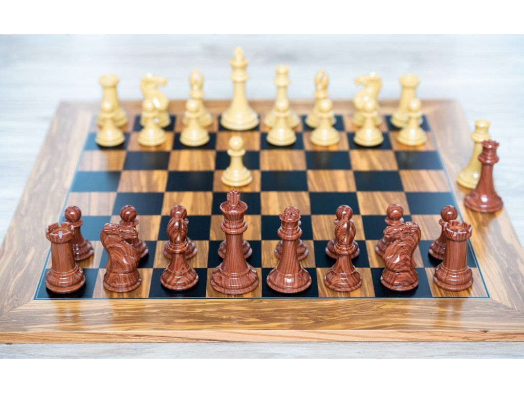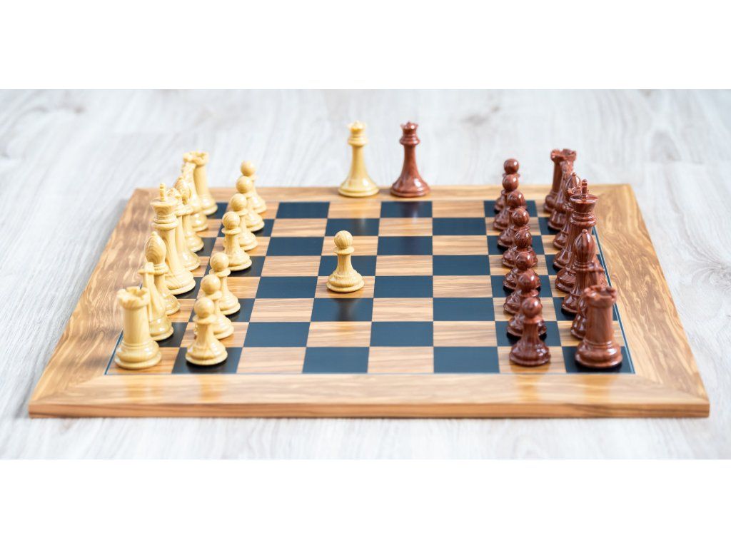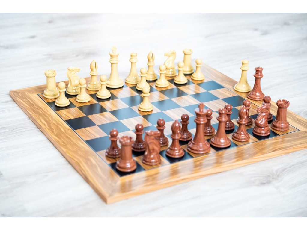 Ein Schachbrett aus dunklem Olivenholz, ergänzt durch robuste und gut ausbalancierte Heckenfiguren, die sich durch hohe Haltbarkeit auszeichnen. Die glatte Oberfläche des Schachbretts wie auch der Figuren sorgt für ein einzigartiges Schachspielerlebnis.